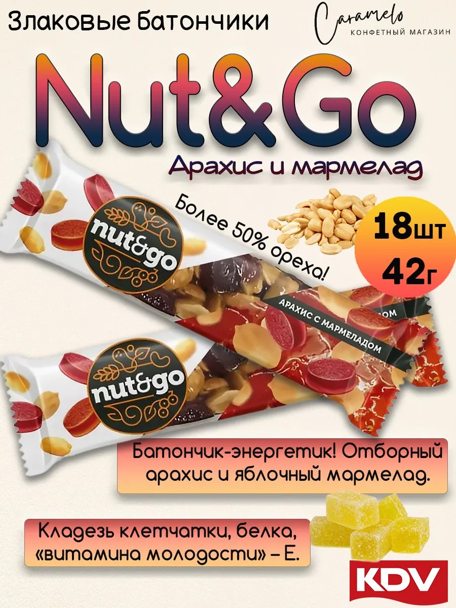 Батончик Nut&Go с арахисом и мармеладом, 18шт по 42г