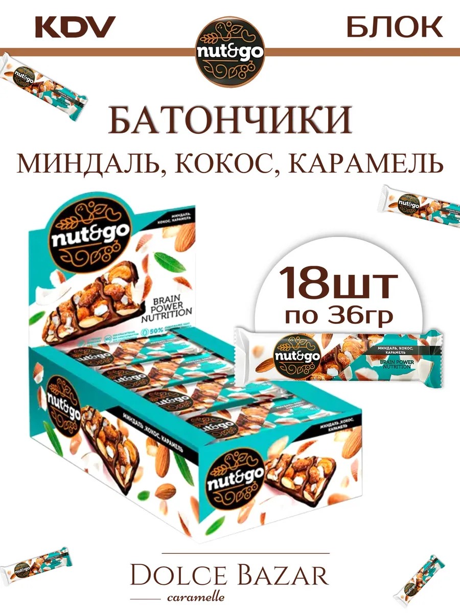 Набор Батончиков миндаль кокос карамель 36гр - 18 шт