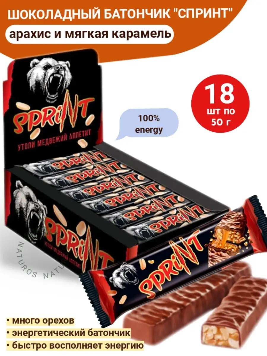 Батончик из мягкой карамели и жареного арахиса Спринт, 18 шт