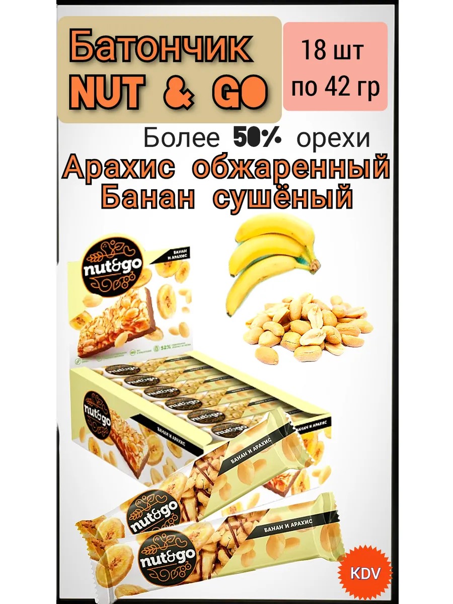 Батончик злаковый Nut and Go с бананом и арахисом — это отличный выбор для перекуса.