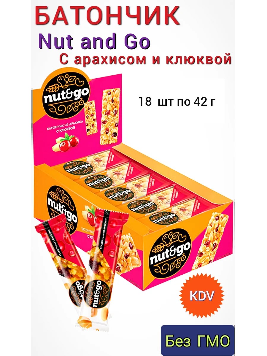 Полезные сладости Nut&Go, арахис, клюква 18 шт