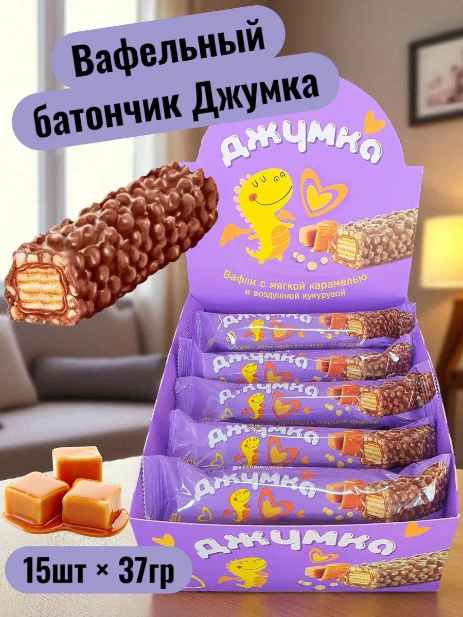Вафельный батончик «Джумка» — это легкий и сладкий перекус, который подарит удовольствие с первого укуса. Внутри скрывается пористый и воздушный слой с кукурузными пузырьками, наполненный нежной шоколадной начинкой. Хрустящий вафельный корпус и насыщенный вкус шоколада делают этот батончик настоящей конфетой для ценителей сладостей. «Джумка» сочетает в себе вафельный хруст и мягкость шоколада, создавая гармонию вкуса, которая поднимет настроение в любой момент дня. Вафельный батончик «Джумка» — это сладкое лакомство для души и хорошего настроения. Нежные вафельки, покрытые аппетитной шоколадной глазурью, скрывают внутри пористый и воздушный слой с пузырьками и шоколадной начинкой. Хрустящий и легкий, этот вафельный батончик словно создан для быстрого перекуса в дороге или чтобы порадовать себя на праздник. Он объединяет вкус любимой конфеты и насыщенность настоящего шоколада, превращая каждый кусочек в маленькое удовольствие.