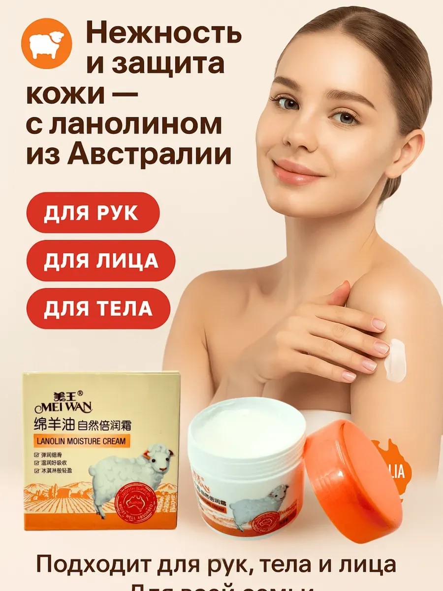 Идеальное средство для ухода за кожей всей семьи — это мягкий, увлажняющий крем с натуральным ланолином из Австралии. Он глубоко питает, восстанавливает защитный барьер и предотвращает сухость. Формула разработана для ежедневного применения: подходит для рук, лица и тела. Нежная текстура быстро впитывается, не оставляет жирной плёнки и липкости.