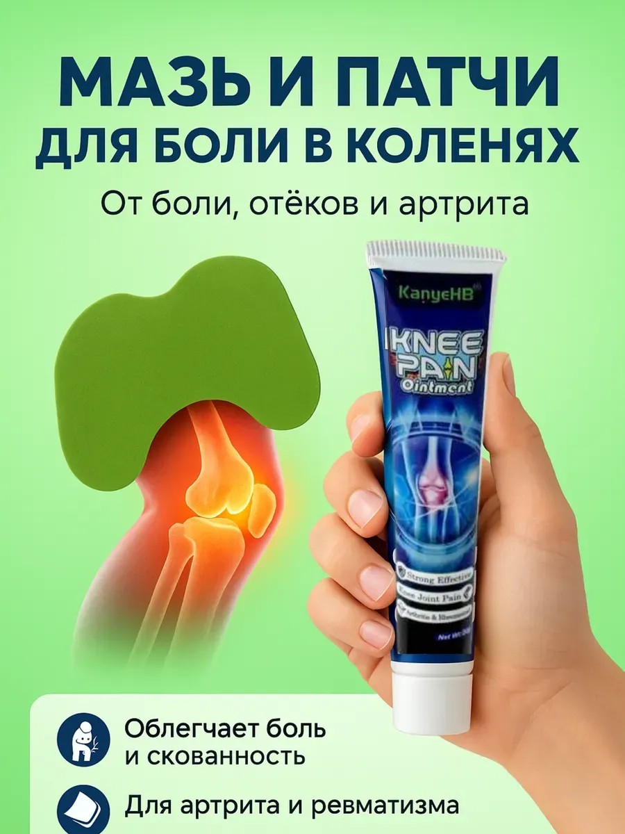 Ищете эффективное средство от боли в суставах? Универсальный набор для восстановления коленей — это то, что нужно. Мазь и согревающие патчи действуют направленно: снимают воспаление, устраняют боль, восстанавливают подвижность и уменьшают отёчность. Подходит при артрозе, артрите, остеохондрозе, ревматизме, растяжениях и спортивных травмах. Это натуральное средство для суставов можно применять при боли в колене, спине, шее, ногах и мышцах.