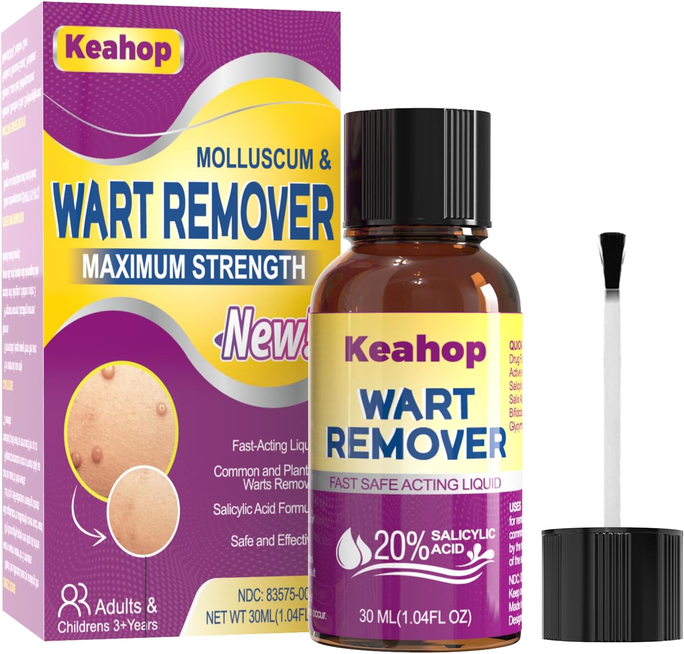 CUSTOMER SERVICE: We are always committed to providing our customers with good products and quality customer service experience. If you encounter any problems in the process of using this product, please contact us in time, we provide 7 * 24 hours consulting services. EASY TO USE: Wash and dry affected area before applying Wart Removal Solution. Apply Wart Remover to the wart, ensuring adequate coverage. Repeat 2 to 3 times a day as needed until wart is removed. QUICK ACTION WART: Our wart removal liquid works on plantar warts, common warts, milia, calluses on feet, toenails or fingernails. Simply apply the liquid to the surface of the wart as directed and most warts will be eliminated within 2 weeks. UNIQUE FORMULA: Wart Remover has a unique odorless formula. It contains 20% salicylic acid, which is twice as effective as other products containing 10% salicylic acid! NDC code: 83575-001-01. MILD AND EFFECTIVE: The wart removal liquid is mild and non-irritating and suitable for many skin types without any discomfort such as stinging, burning or freezing. After applying the solution on the warts, it helps to reduce and remove warts from hands, feet and skin. Designed in the USA.
