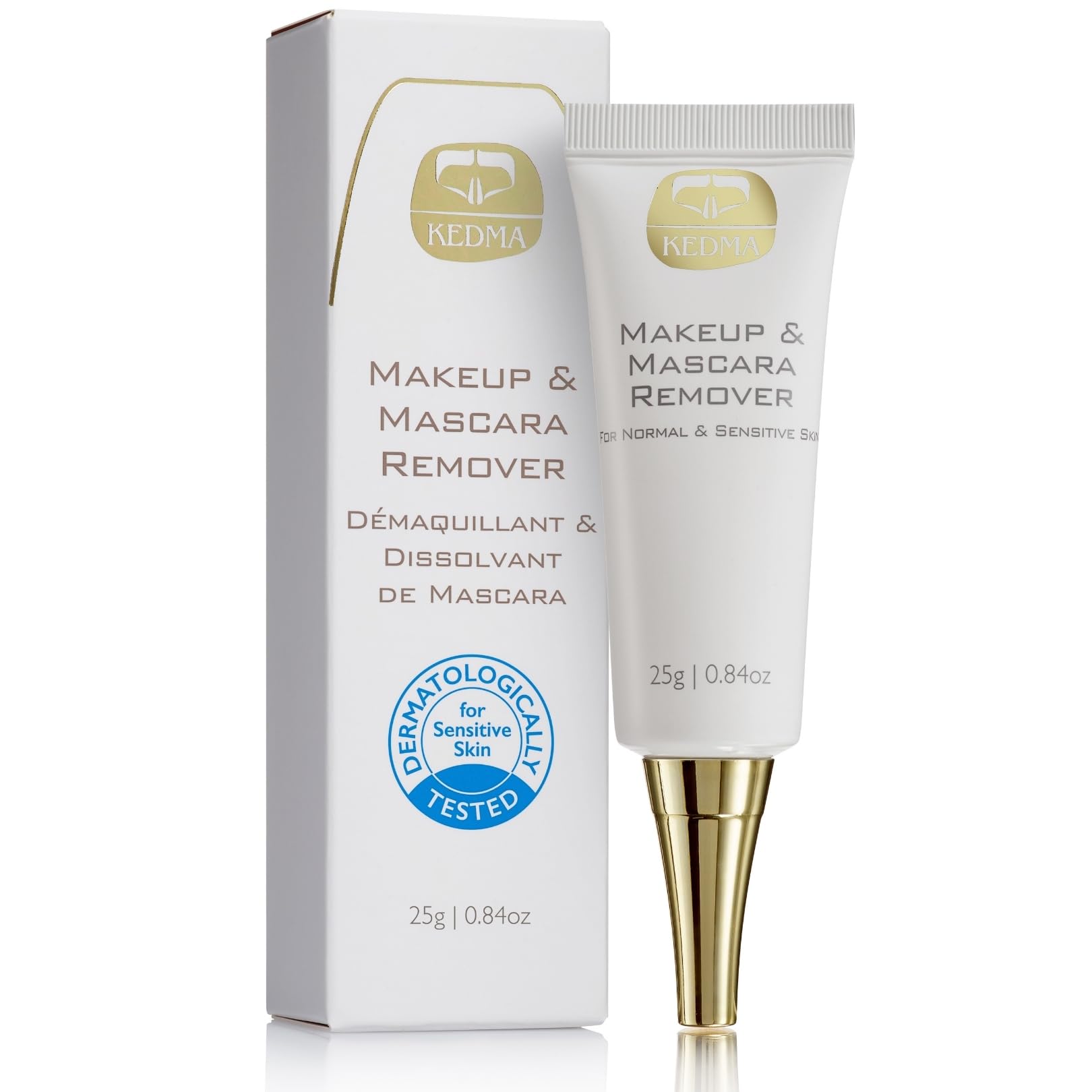 : Kedma's Makeup Mascara Remover is a gentle yet effective formula that effortlessly dissolves all types of makeup, including waterproof mascara. Enriched with high-quality seed oils such as grapeseed oil and jojoba seed wax, this makeup remover leaves skin clean, smooth, and radiant. Vitamin E and other antioxidants protect the skin from free radicals, while hyaluronic acid enhances the skin's ability to retain moisture. Safety Warning: For external use only. Avoid contact with eyes. Do not use if you are allergic to any of these ingredients. If a rash develops, discontinue use immediately.GENTLE FORMULA FOR ALL SKIN TYPES: Suitable for all skin types, including sensitive skin, this makeup remover is dermatologically tested. It's gentle enough for daily use, ensuring thorough cleansing without irritation. NATURAL OILS FOR SOFT SKIN: This makeup remover contains high-quality seed oils such as grapeseed oil and jojoba seed wax. These natural ingredients soften the skin and maintain its protective lipid barrier. HYDRATION ANTIOXIDANT PROTECTION: Enriched with vitamin E and other antioxidants, this makeup remover protects the skin from free radical damage. It also contains hyaluronic acid, which helps maintain hydration, leaving skin soft and nourished. EFFECTIVE MAKEUP REMOVAL: Kedma's Makeup Mascara Remover is designed to effectively remove all types of makeup, including waterproof mascara. Its soft texture transforms into a milky lotion for easy and complete removal.Description du produit Le Makeup Mascara Remover de Kedma est une formule douce mais efficace qui dissout sans effort tous les types de maquillage, y compris le mascara résistant à l'eau. Enrichi en huiles de graines de haute qualité comme l'huile de pépins de raisin et la cire de graines de jojoba, ce démaquillant laisse la peau propre, lisse et éclatante. La vitamine E et d'autres antioxydants protègent la peau des radicaux libres, tandis que l'acide hyaluronique renforce la capacité de rétention d'eau de la peau. Avertissement De Sûreté Usage externe uniquement. Éviter le contact avec les yeux. Ne pas utiliser si vous êtes allergique à l'un de ces ingrédients. En cas d'irruption, stopper immédiatement l'utilisation de ce produit.FORMULE DOUCE POUR TOUS TYPES DE PEAU : Adapté à tous les types de peau, y compris les peaux sensibles, ce démaquillant est dermatologiquement testé. Il est suffisamment doux pour une utilisation quotidienne, assurant un nettoyage en profondeur sans irritation. HUILES NATURELLES POUR UNE PEAU DOUCE : Ce démaquillant contient des huiles de graines de haute qualité telles que l'huile de pépins de raisin et la cire de graines de jojoba. Ces ingrédients naturels adoucissent la peau et maintiennent sa barrière lipidique protectrice. HYDRATATION ET PROTECTION ANTIOXYDANTE : Enrichi en vitamine E et autres antioxydants, ce démaquillant protège la peau des dommages causés par les radicaux libres. Il contient également de l'acide hyaluronique qui aide à maintenir l'hydratation, laissant la peau douce et nourrie. ÉLIMINATION EFFICACE DU MAQUILLAGE : Le Makeup Mascara Remover de Kedma est conçu pour éliminer efficacement tous les types de maquillage, y compris le mascara waterproof. Sa texture douce se transforme en une lotion laiteuse pour une élimination facile et complète.Kedma - Démaquillant Visage et Mascara à l'Huile de Jojoba et Vitamine E - Pour Tous Types de Peau - 25g