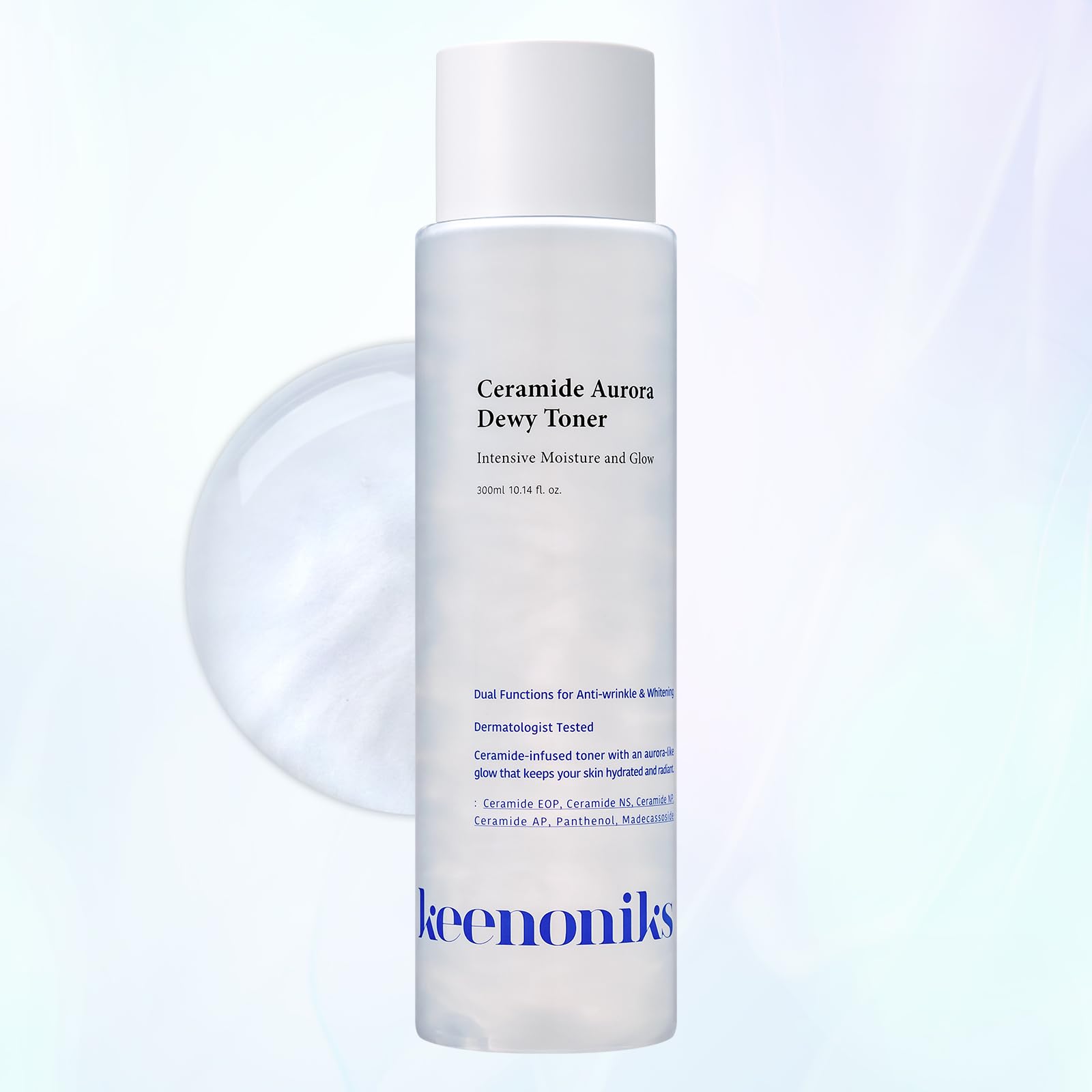 keenoniks Ceramide Aurora Dewy Toner Deeply Hydrating & Barrier-Repair Toner for Radiant Healthy Skin - Korean Skincare for Sensitive Skin - 300ml (10.14 fl oz)