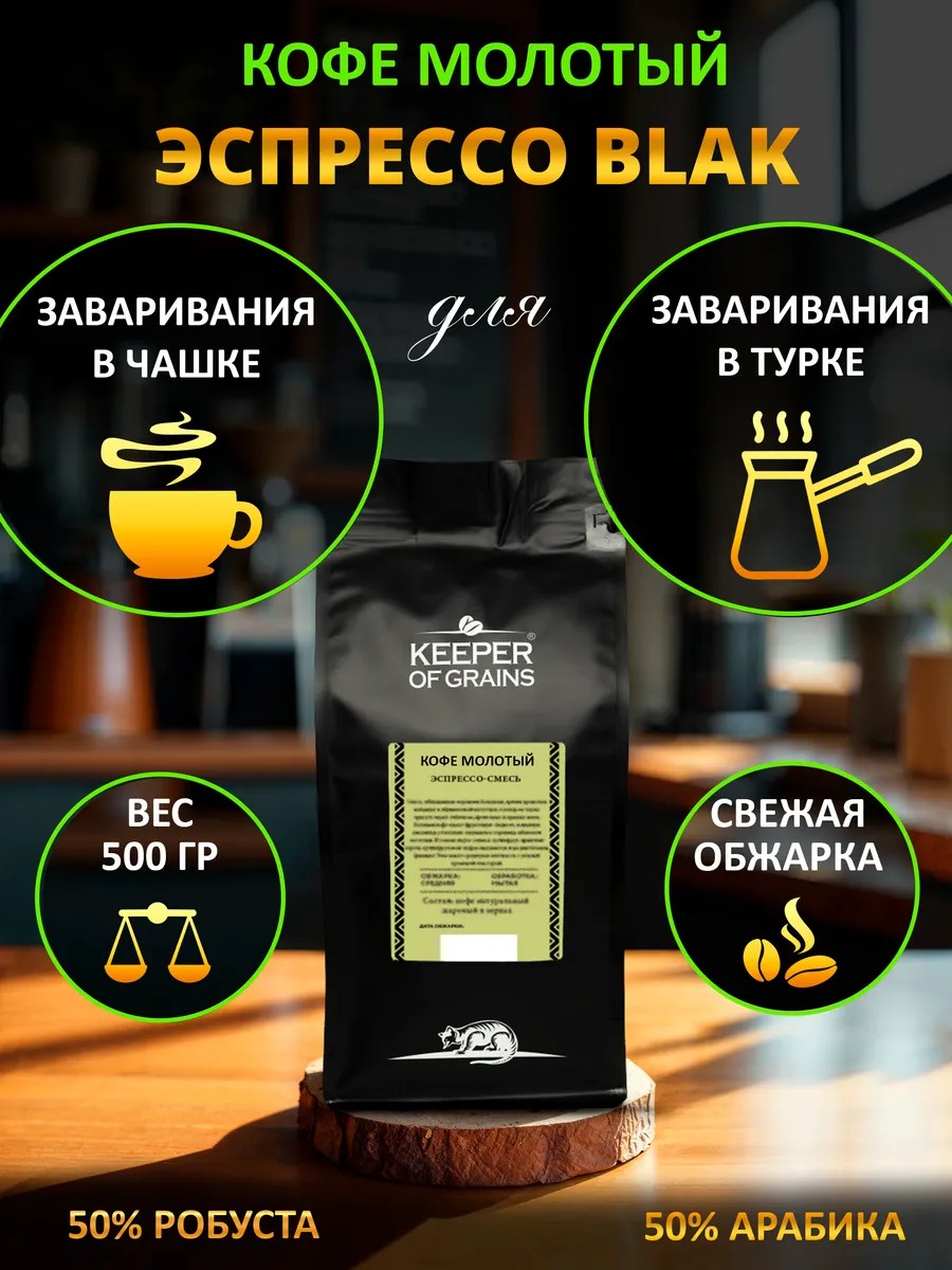 Keeper of Grains Кофе молотый для чашки, турки "Эспрессо Black "