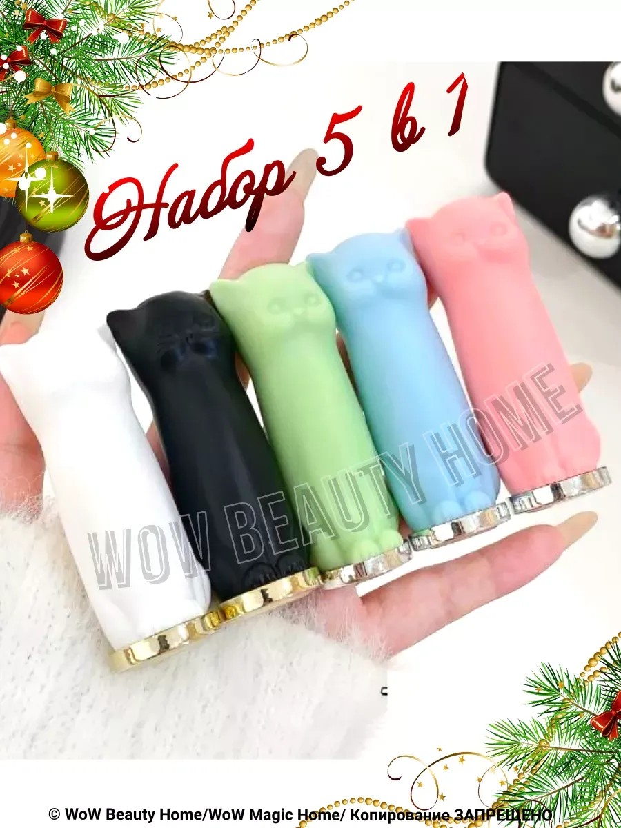 Чудо-Бальзамы 5 штук для губ в виде милой кошечки, с очень приятным ароматом, прекрасно впишутся в ваш бокс с косметикой и станут отличным дополнением к вашей коллекции. Упаковка в виде милых кошечек не только радует глаз, но и делает продукт отличным подарком на новый год для подруги или сестры.
