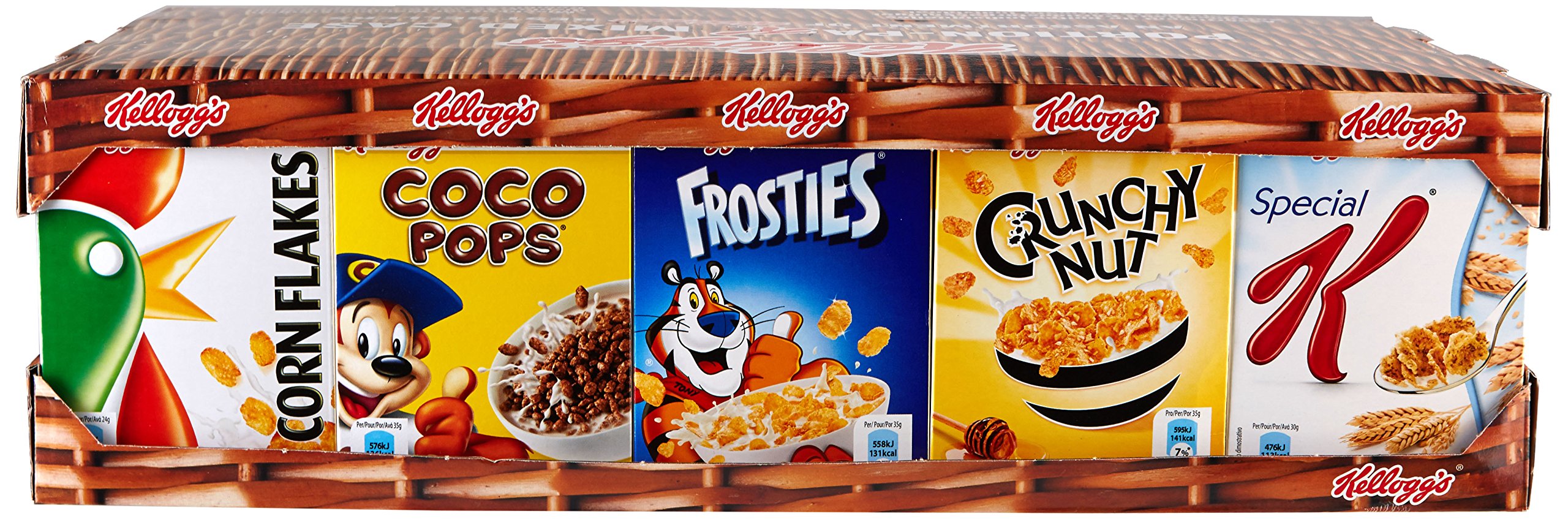 Kellogg's Cereal Assortment 35 Mini Pack Special K Corn Flakes Coco Pops Frosties Crunchy Nut 35 x 34g Assortment of 35 individual bags of Kellogg's cereal A mix of 5 Kellogg's cereal brands perfect for the whole family Contains 7 packs of Coco Pops, Frosties, Special K Plain, Corn Flakes and Crunchy NutContains 7 packs of Coco Pops, Frustes, Spécial K Nature, Corn Flakes, and Crunchy Nu. A mix of 5 Kellogg's cereal brands, perfect for the whole family!. Assortment of 35 individual packs of Kellogg's cereal. Assortiment de céréales Kellogg's 35 mini pack Special K Corn Flakes Coco Pops Frosties Crunchy Nut 35 x 34 g Assortiment de 35 sachets individuels de céréales Kellogg's Un mélange de 5 marques de céréales Kellogg's parfait pour toute la famille Contient 7 paquets de Coco Pops, Frustes, Spécial K Nature, Corn Flakes et Crunchy NuContient 7 paquets de Coco Pops, Frustes, Spécial K Nature, Corn Flakes et Crunchy Nu. Un mix de 5 marques de céréales Kellogg's parfait pour toute la famille !. Assortiment de 35 paquets individuels de céréales Kellogg's.