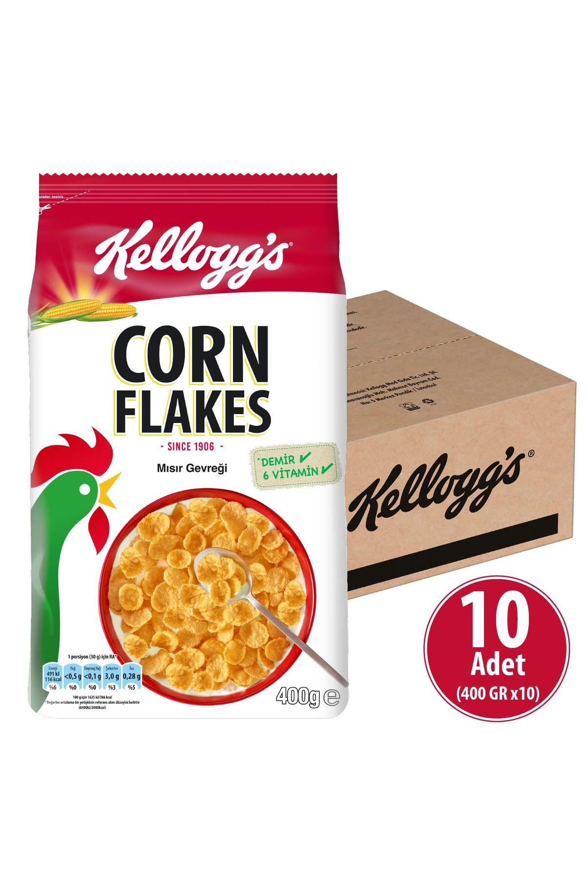 Kellogg's Corn Flakes Breakfast Cereal 400g x 10 Pieces Source of Fiber Contains Iron and 6 Vitamins