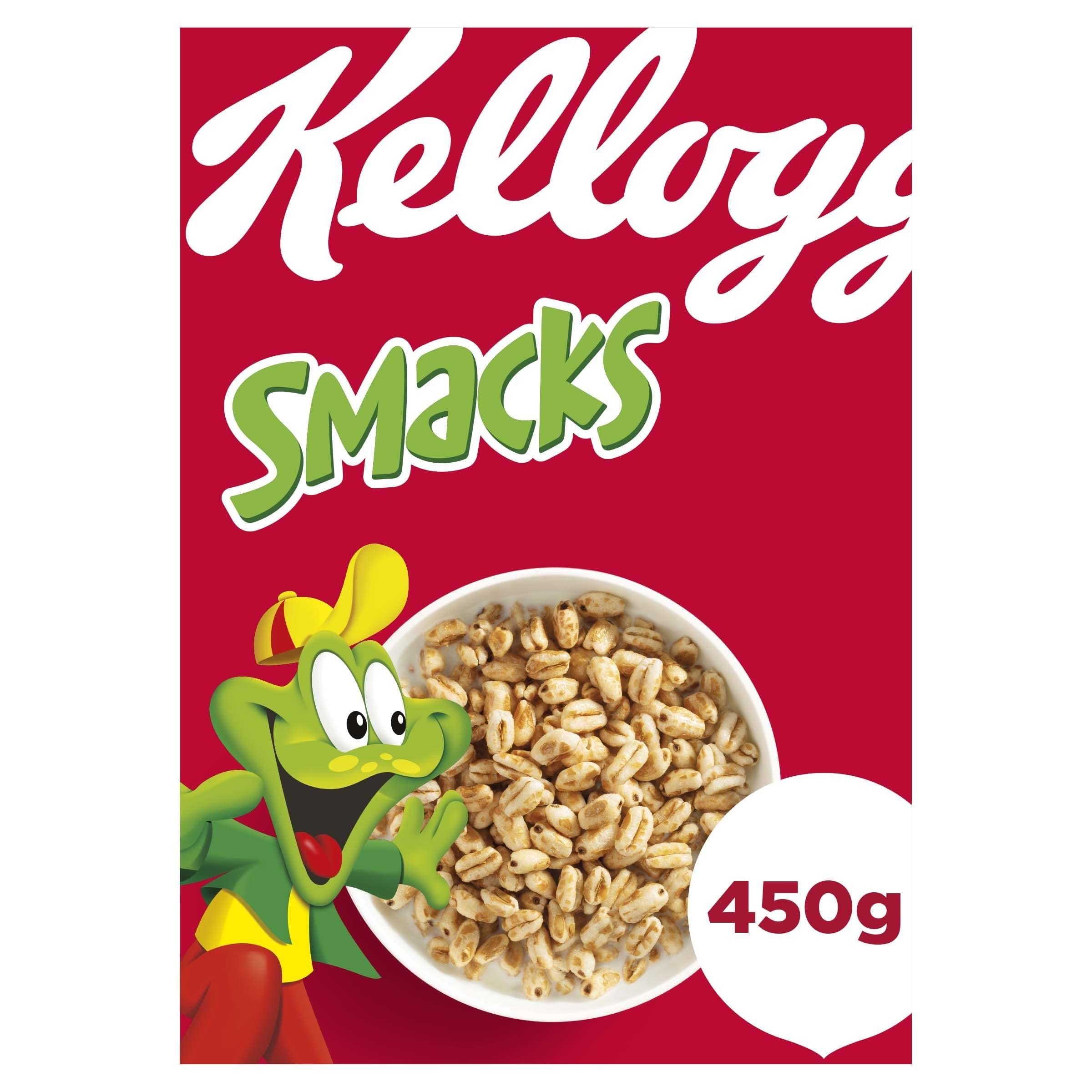 Kellogg's Smacks Cereal - Puffed Wheat Cereal - No Artificial Flavors or Colors - 450g Pack INGREDIENTS Ingredients: Wheat (58 ), Sugar, Glucose Syrup, Niacin, Iron, Vitamin B6, Riboflavin, Thiamin, Folic Acid, Vitamin D, Vitamin B12 DIRECTIONS Adults and Children SAFETY WARNING Do not apply See more