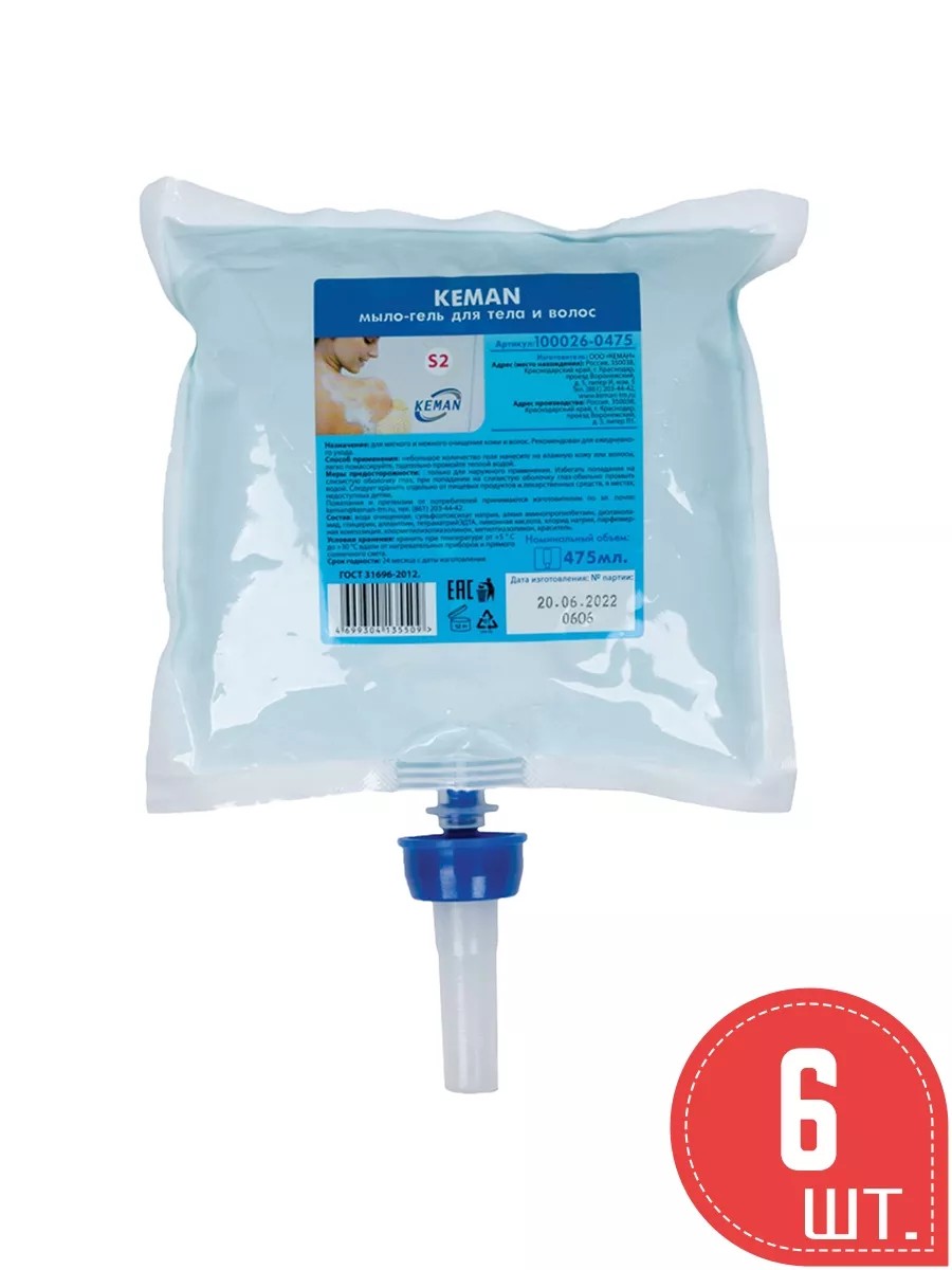 KEMAN 6 шт. Картридж с жидким мылом-гелем одноразовый S2, 0,475 л