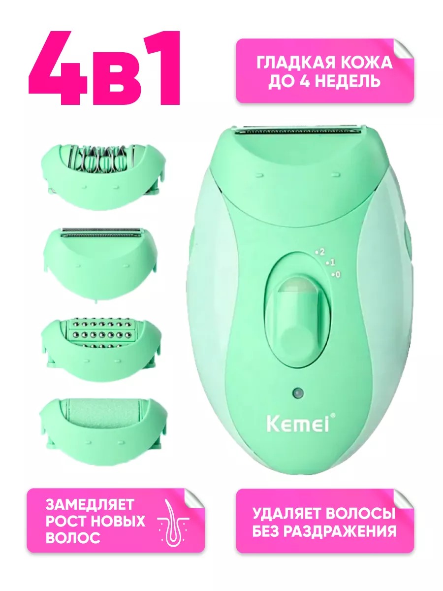 Беспроводной Женский эпилятор - эффективное средство для удаления волос. Kemei KM-6037 имеет 4 сменные насадки: эпилятор, бритву, массажер и роликовую пилку - скраб для обработки пяток.