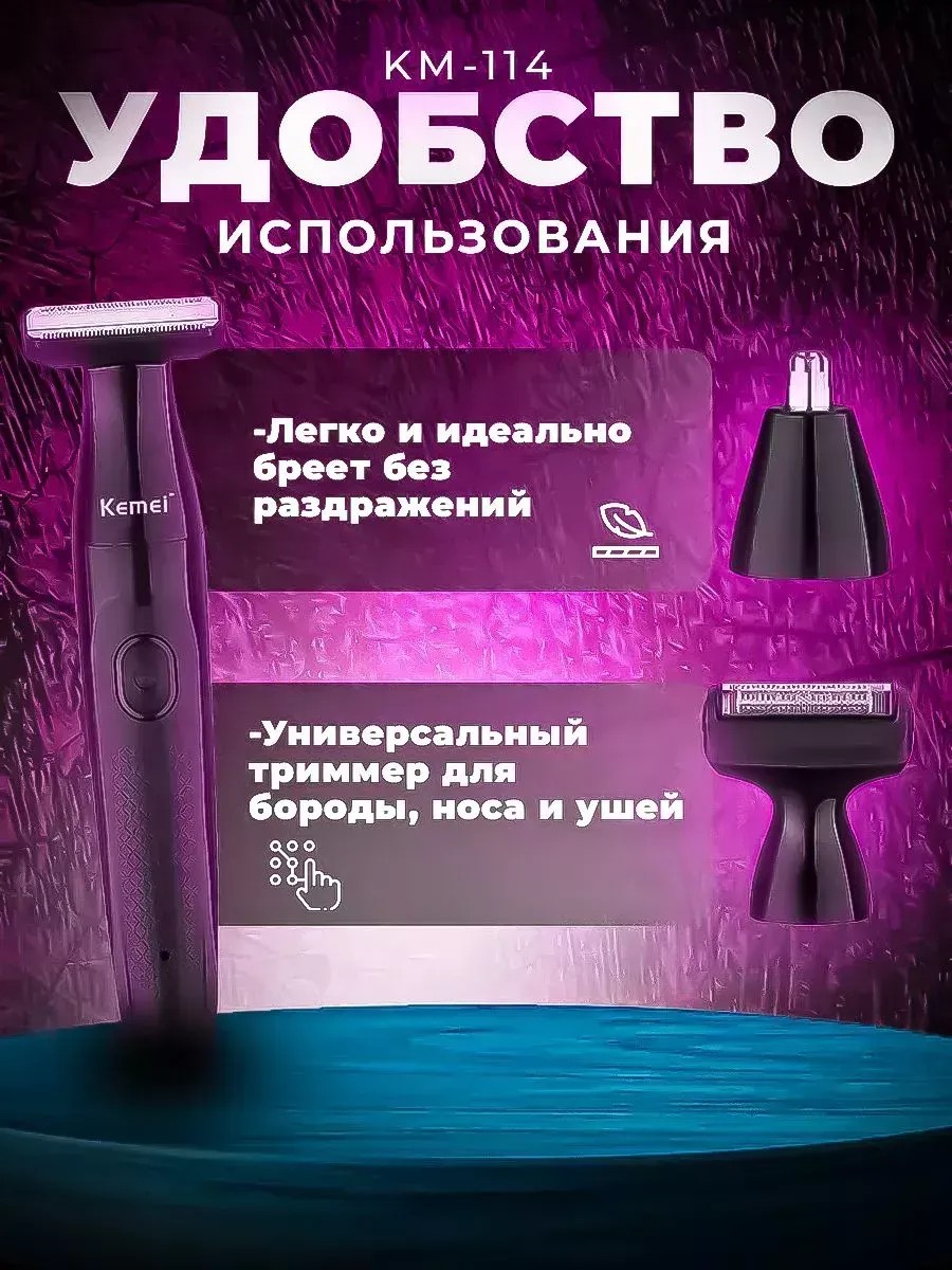 Современный и стильный дизайн триммера превращает его в элегантный аксессуар, который удобно брать с собой в поездки или использовать в домашних условиях. Убедитесь, что уход за собой стал проще и эффективнее с многофункциональным триммером 3 в 1! Этот прибор откроет новые горизонты в мире личной гигиены и стиля, обеспечивая вам идеальный внешний вид в любое время.