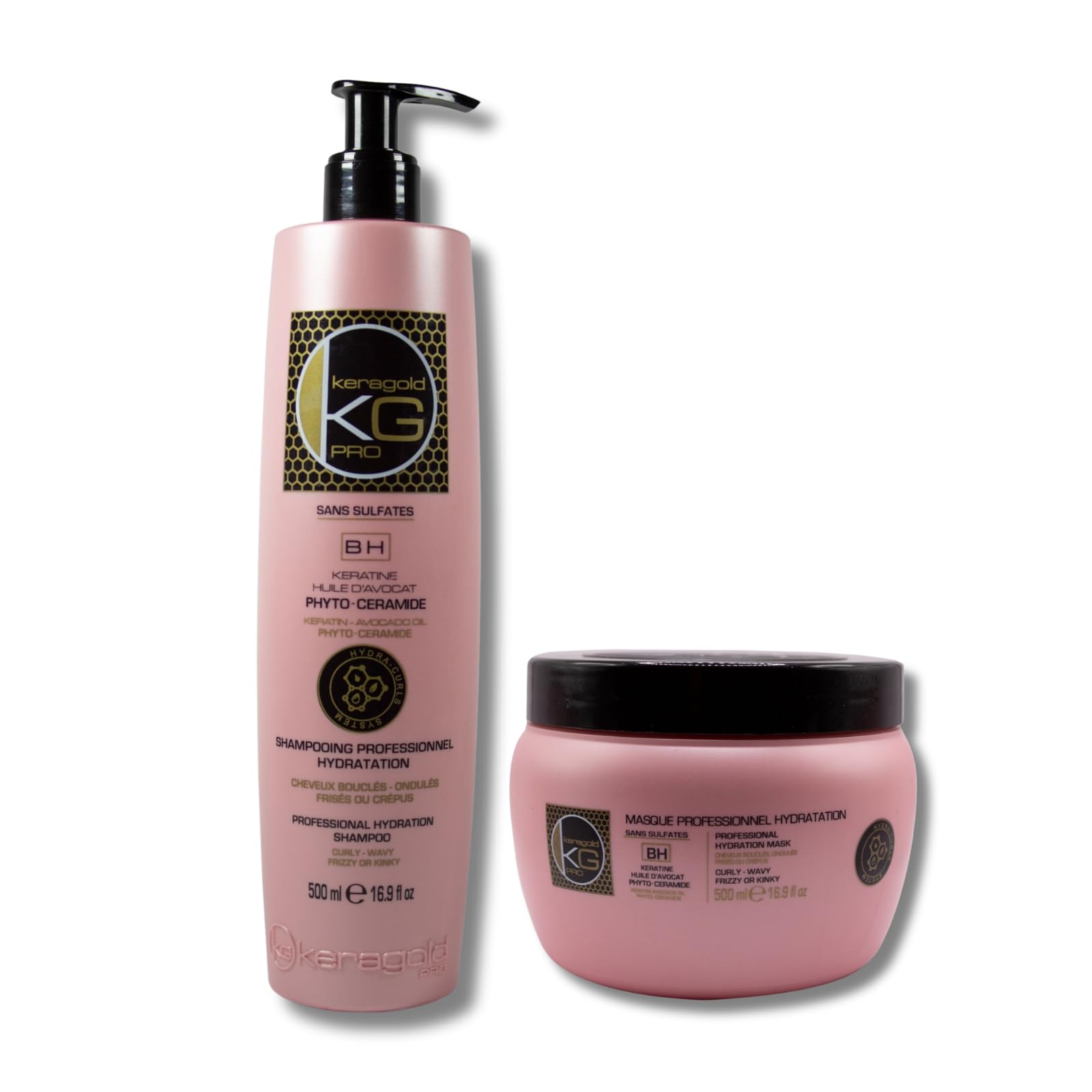 Enhance your curls every day ? with the Keragold KG Pro Curls Duo, specially formulated to hydrate, nourish, and define all curly and coily hair textures. This professional duo combines gentleness, intense nourishment, and anti-frizz properties for defined, supple, and healthy-looking curls Sulfate-Free Shampoo – Gently cleanses, respects the natural structure of curls, and preserves moisture. Rich Hydrating Mask – Infused with avocado oil, phytoceramides, and keratin to nourish, strengthen, and soften the hair fiber. The result: softer, less dry, perfectly defined, and frizz-free curls ? An essential for curly, coily, and kinky hair that lacks hydration, definition, and manageability. INGREDIENTS x SAFETY WARNING See product packaging. See moreFORTIFYING KERATIN – Protects against breakage, strengthens the hair fiber, and improves hair quality. ANTI-FRIZZ LASTING DEFINITION – Reduces frizz, improves elasticity, and naturally defines curls. ULTRA-HYDRATING MASK – Enriched with avocado oil and phytoceramides to deeply nourish and repair. SULFATE-FREE SHAMPOO – Gentle cleansing that preserves moisture and respects curl shape. SPECIAL DUO FOR CURLS AND KINKY HAIR – An essential routine to hydrate, nourish, and define textured hair.Keragold KG Pro – Duo BH Boucles – Shampoing Sans Sulfates Masque Hydratant Kératine, Huile d'Avocat Phyto-Céramides Nutrition, Anti-Frizz Définition des BouclesDESCRIPTION DU PRODUIT DESCRIPTION DU PRODUIT Sublimez vos boucles au quotidien ? grâce au Duo BH Boucles Keragold KG Pro, spécialement formulé pour hydrater, nourrir et définir toutes les textures bouclées à crépues. Ce duo professionnel combine douceur, nutrition intense et anti-frizz pour des boucles dessinées, souples et éclatantes de santé Shampoing Sans Sulfates – Nettoie en douceur, respecte la structure naturelle des boucles et préserve l'hydratation. Masque Hydratant Riche – Infusé d'huile d'avocat, de phyto-céramides et de kératine pour nourrir, renforcer et assouplir la fibre capillaire. Résultat : des boucles plus souples, moins sèches, parfaitement définies et sans frisottis ? Un essentiel pour les cheveux bouclés, frisés et crépus qui manquent d'hydratation, de définition et de discipline. INGRÉDIENTS x AVERTISSEMENT DE SÉCURITÉ Voir emballage produit. Voir plusKÉRATINE FORTIFIANTE – Protège contre la casse, renforce la fibre et améliore la qualité du cheveu. ANTI-FRIZZ DÉFINITION DURABLE – Réduit les frisottis, améliore l'élasticité et définit naturellement les boucles. MASQUE ULTRA-HYDRATANT – Enrichi en huile d'avocat phyto-céramides pour nourrir en profondeur et réparer. SHAMPOING SANS SULFATES – Nettoyage doux qui préserve l'hydratation et respecte la forme des boucles. DUO SPÉCIAL BOUCLES À CRÉPUS – Routine essentielle pour hydrater, nourrir et définir les cheveux texturés.