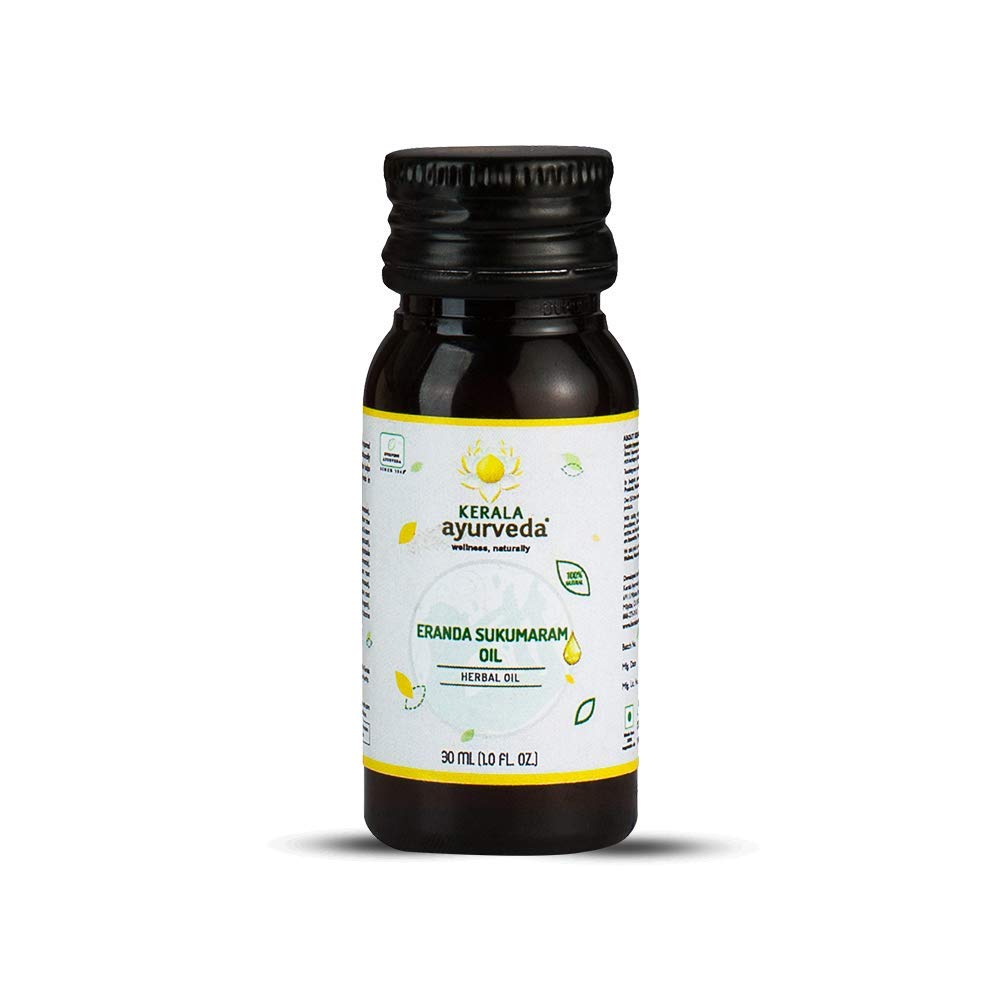 All Natural Ingredients Highest Standards of Safety, Purity, Efficacy, Authenticity 100 Herbal No added Fragrance or Color Chemical Paraben Free No Mineral Oil or Petroleum by-products used. USAGE: As directed by your Ayurvedic Physician. Quantity: 1.01 Fl Oz Item Form: Oil. Derived from the sukumaran ghritham recipe mentioned in the ancient Ayurveda text Sahasrayogam. Helps healthy elimination, Helps normalize vitiated Vata dosha, and helps balance Vata and Pitta doshas. Eranda Sukumaram oil is a time-tested Ayurvedic oil prepared using castor oil as the base. This natural recipe is traditionally used to maintain normal elimination. It also helps maintain normal hormonal balance.