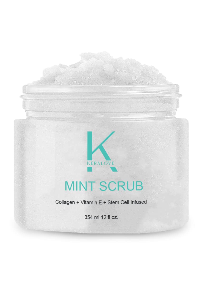 Keralove Scrub with Collagen and Stem Cells 12 oz - Exfoliating Himalayan Salt Scrub for Cellulite - Deep Cleansing for Acne Scars Wrinkles - Moisturizes Skin (12 Mint) Mint 12 Ounce (Pack of 1)