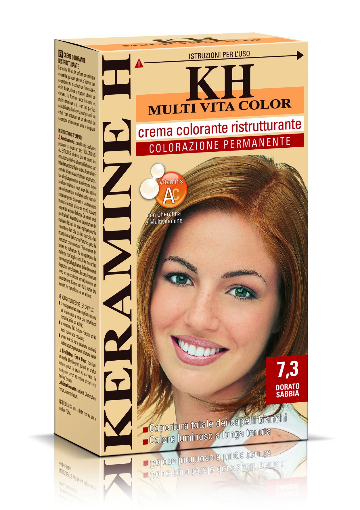 Ne pas sécher avec des shampooings. Couvre 100 des cheveux blancs. Couleur vive et longue durée. Crème colorante restructurante à base de kératine et de multivitamines.