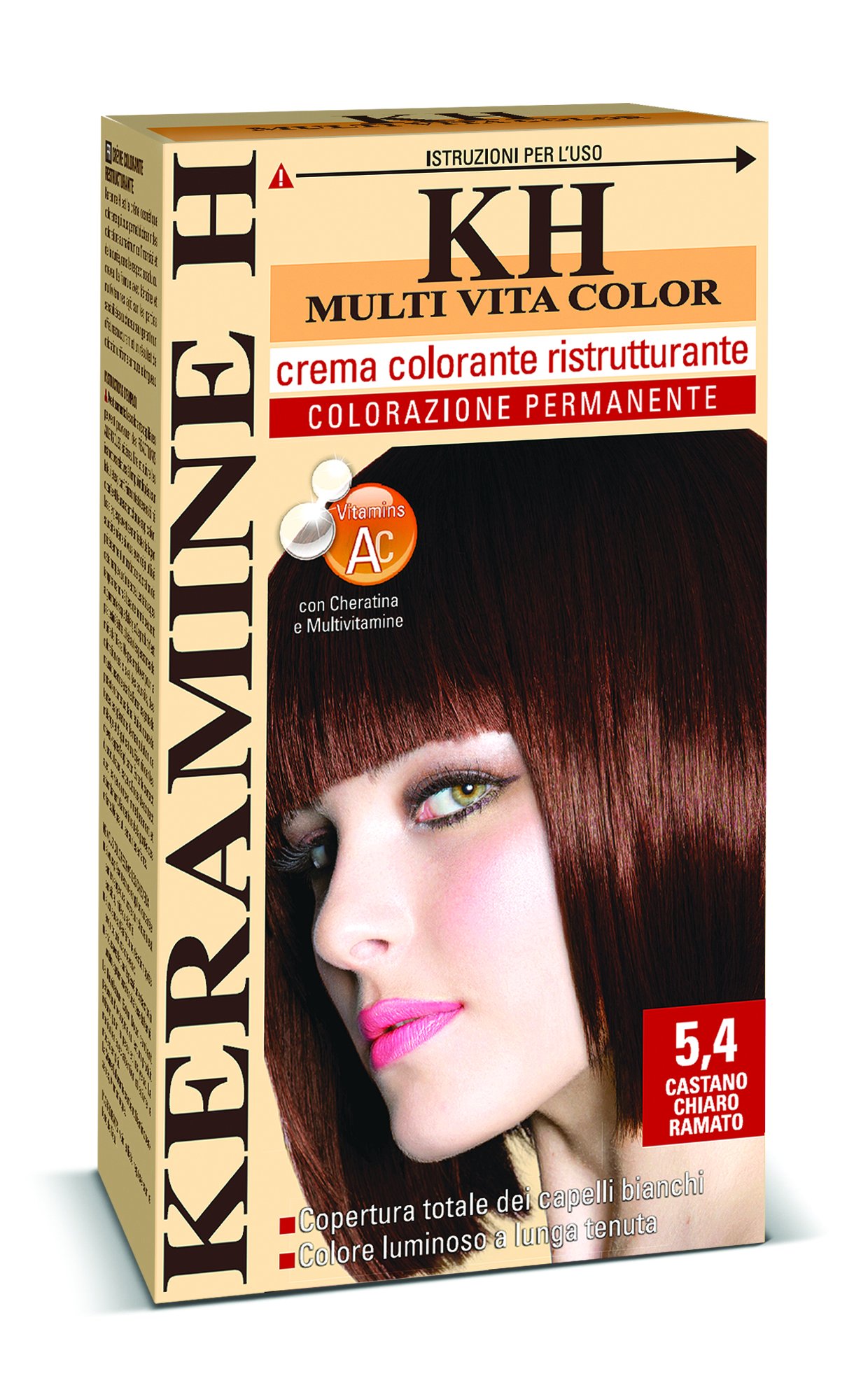 DESCRIPTION DU PRODUIT Crème cosmétique colorante qui vous permet d'obtenir des couleurs au maximum de l'intensité et de la durée dans le respect total du cheveux. La formule à base de di.kératina. e.multivitamine.agit dans les zones sensibilisées du cheveu pour garantir un effet restructurant et un résultat de couleur uniforme sur toute sa longueur.