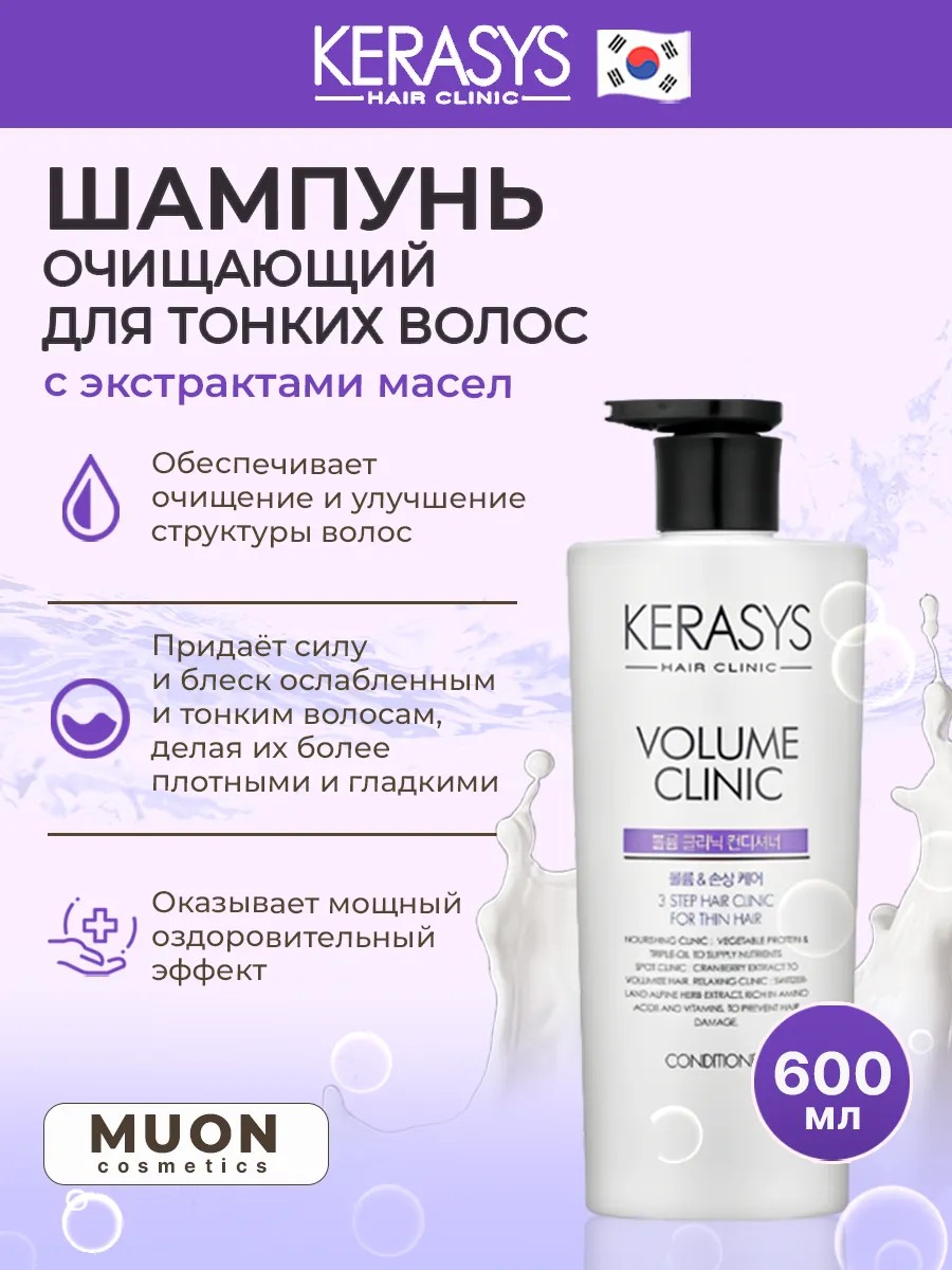 Kerasys Volume Clinic Shampoo — эффективный шампунь, который представляет собой профессиональную систему для ухода и лечения за тонкими и ослабленными волосами.
