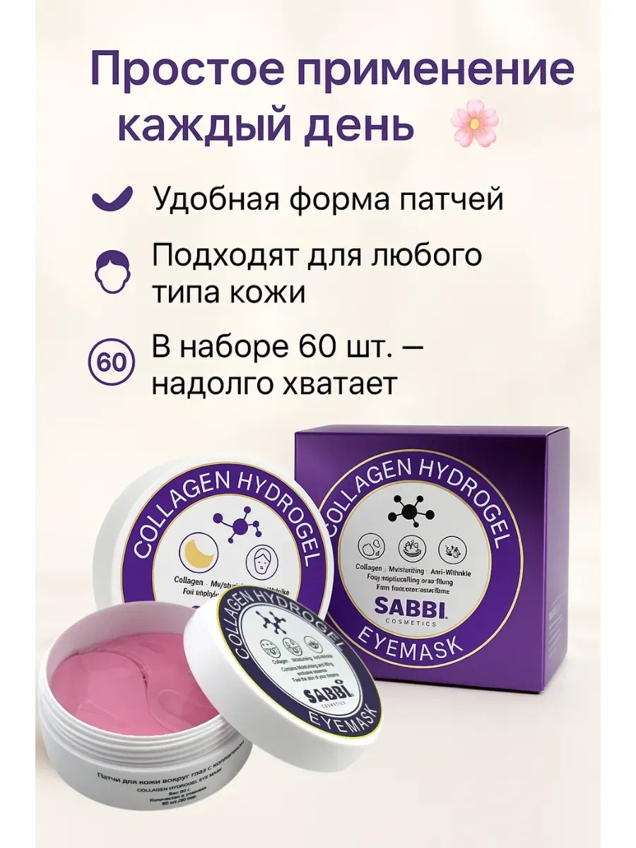 Коллагеновые гидрогелевые патчи для кожи вокруг глаз — это инновационное средство для быстрого и эффективного ухода за нежной зоной под глазами. Патчи пропитаны активным составом с коллагеном, который способствует разглаживанию мелких морщин, уменьшению тёмных кругов и отёков, а также дарит коже свежесть и упругость. антивозрастные.
