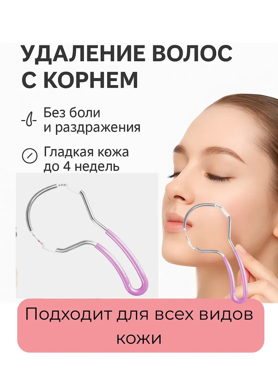 Простой в использовании инструмент для удаления волос на лице. Идеально подходит для области над верхней губой, щёк, подбородка и межбровья. Основан на принципе скручивания пружины, благодаря чему быстро и безболезненно захватывает и удаляет даже самые тонкие волоски с корнем. Не требует батареек и подзарядки — работает в любое время и в любом месте.