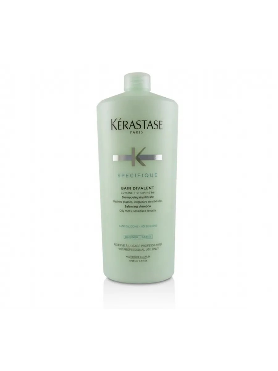 Specifique Divalent Balancing Shampoo-Bath for hair that is oily at the roots and sensitive at the ends. Cleanses the scalp of excess sebum and imparts a pleasant scent. The active ingredient, a dual-action amino acid with a unique affinity for hair, normalizes sebum production and replenishes moisture.