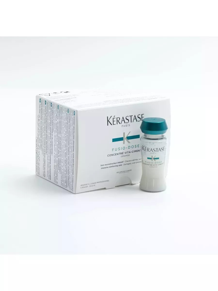 Kerastase Fusio Dose Concentre Vita-Ciment is an exclusive professional treatment for instant hair transformation, restoring severely damaged hair. Fusio-Dose delivers double the effect in just one professional application and is more effective than any other booster and concentrate treatment.