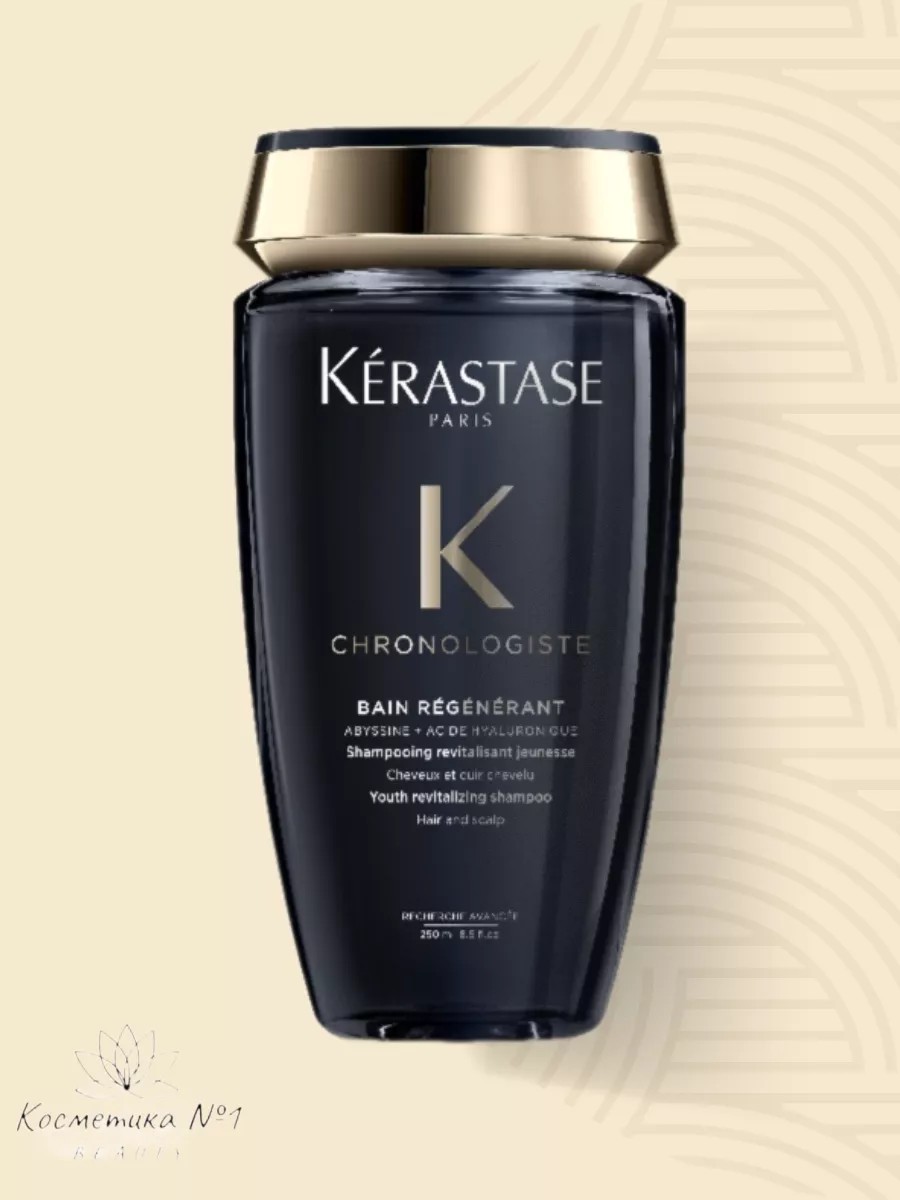 Kerastase Chronologiste Revitalizing Shampoo-Bath is a universal product suitable for all hair types. It gently cleanses the scalp and hair. Contains hyaluronic acid, the Abyssin molecule, and vitamin E, which combat the main signs of aging. It provides long-lasting scalp hydration, strengthens hair, saturates it with moisture, restores elasticity, and adds luxurious shine. Kerastase Chronologiste Shampoo-Bath moisturizes and nourishes hair from root to tip, giving it a light matte shine, highlighting its natural beauty. It has a transparent texture and a pleasant scent. It gently affects the scalp, normalizing the oil and water balance and eliminating irritation. Kerastase Chronologiste Shampoo-Bath moisturizes and nourishes hair from tip to tip, giving it a light matte shine, highlighting its natural beauty. The shampoo has a pleasant scent with notes of tea rose, vanilla, and musk. Featuring rich foaming properties, it ensures perfect rinsing and is economical to use. Suitable for both professional salon use and home use, this restorative shampoo will not only help your hair look attractive and well-groomed, but also maintain it for a long time. Designed for women and men who want to look stylish and well-groomed, it makes a wonderful gift for mom, girlfriend, or loved one for a birthday, Women's Day, or New Year's. The unique properties of this nourishing shampoo will meet the highest hair care needs and expectations. Suitable for regular use.