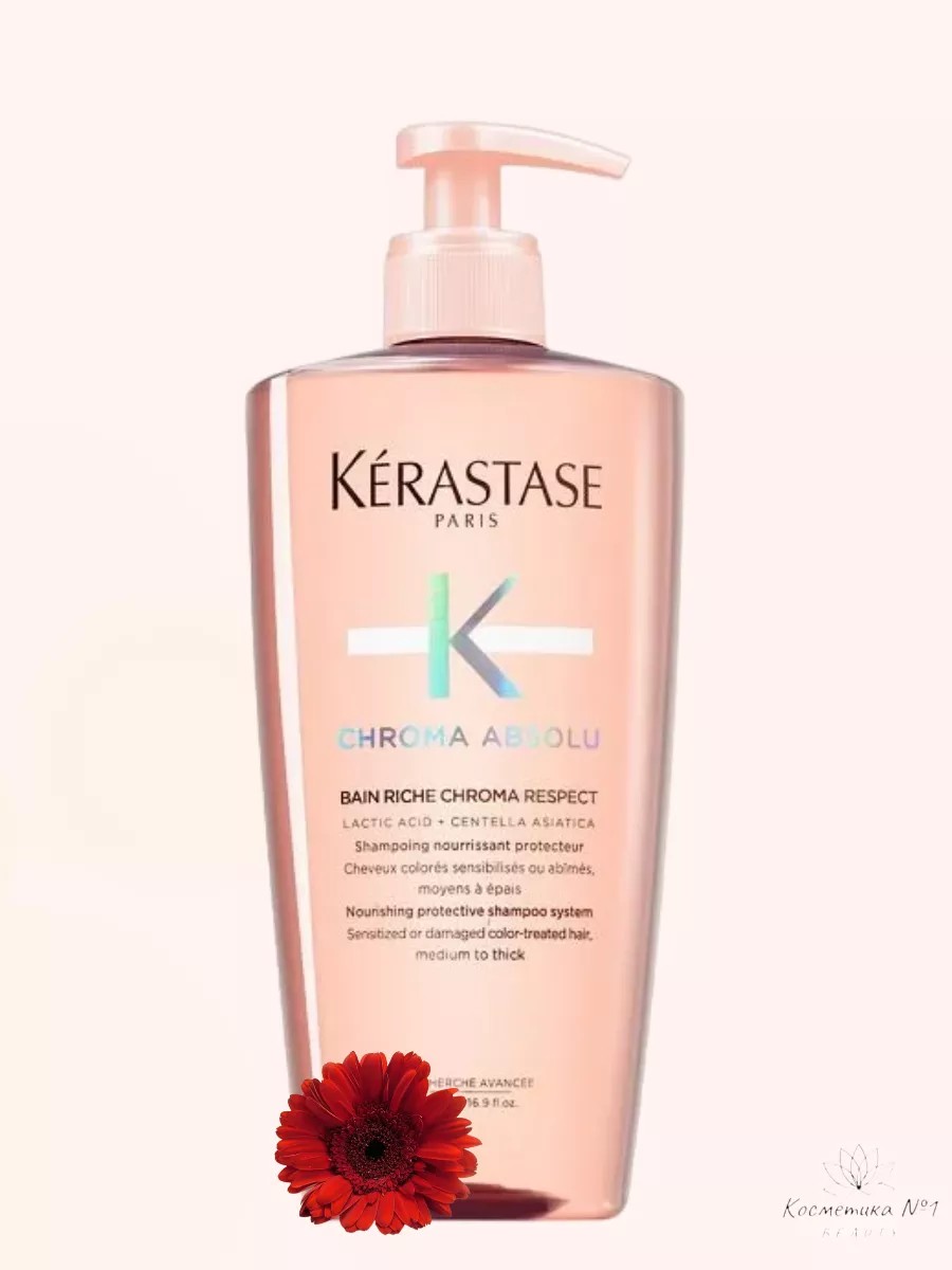 Шампунь-ванна Chroma Respect Riche, 500 мл. - это насыщенный питательный и защитный шампунь для всех типов сенсибилизированных или поврежденных окрашенных волос. Лучше всего подходит для толстых волос и волос средней толщины. Шампунь увлажняет, питает и смягчает волосы, обогащает их комплексом витаминов и микроэлементов, делает локоны чистыми, свежими, эластичными и послушными. Светло-розовый полупрозрачный гель очищает и питает волосы, предотвращая потускнение цвета. Молочная кислота и центелла азиатская в составе помогают уменьшить пористость волос, разгладить их поверхность, добиться максимального сохранения цвета и сократить вызванное окрашиванием пушение. При соприкосновении с водой густой гель взбивается в невесомую пену, окутывает каждую волосинку и мастерски выполняет свою работу. Бессульфатный состав заботиться о тотальном очищении с элементами глубокого увлажнения и восстановления. Молочная кислота работает лучше любого стайлингового средства — она выравнивает пористую поверхность, убирает некрасивые заломы, создает эффект единого, струящегося шелком полотна. Полученный из листьев центеллы сок увеличивает циркуляцию крови, ускоряет рост, способствует выработке коллагена в нужном количестве.