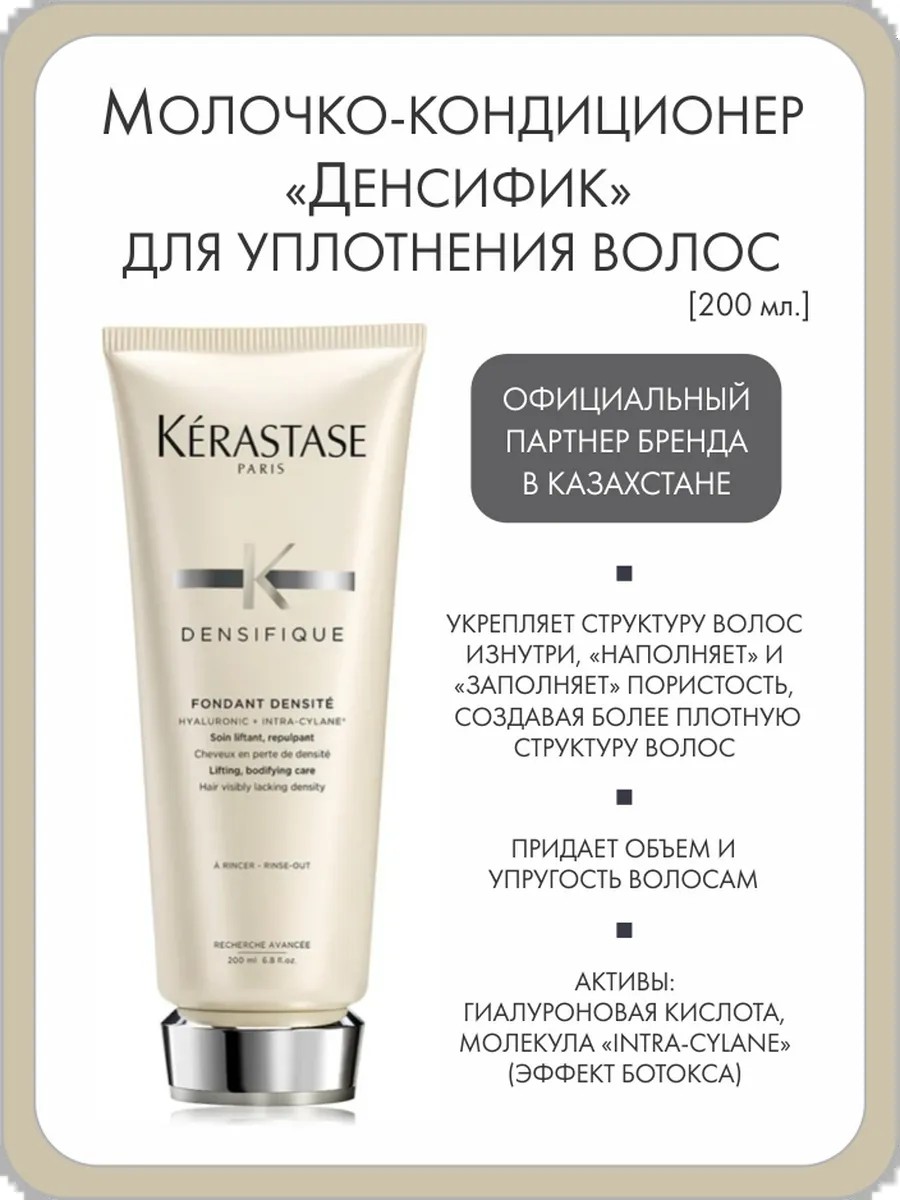 Уплотняющее молочко "Денсифик" для истончающихся тонких волос с гиалуроновой кислотой и молекулой «ботокса». Обладает легкой, кремовой текстурой, которая укрепляет структуру волос. Гиалуроновая кислота и инновационная молекула «ботокса» INTRA-CYLANE создают поддерживающую структуру для укрепления волос изнутри, интенсивно связывая молекулу воды и удерживая надолго влагу, а также оказывая ботоксоподобный эффект, «наполняя» и «заполняя» пористость, создавая более плотную структуру волос.
