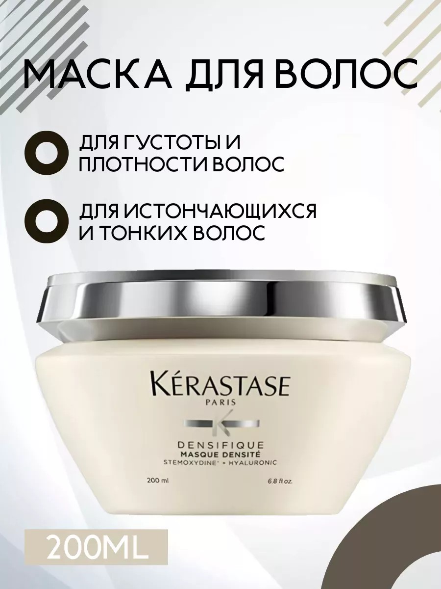 Маска для густоты и плотности волос - Kerastase Densifique Masque Densite. Восстанавливающая уплотняющая маска Densité предназначена для истончающихся и тонких волос. Она эффективно восстанавливает и укрепляет волосяную структуру. При регулярном уходе. Локоны становятся более плотными и ухоженными на вид. Появляется объём и естественный блеск. Активные компоненты: Stémoxydine - главная молекула в составе Densifique в максимальной 5%-ной концентрацией, оптимизирует циклы развития волос и значительно увеличивает количество волос на квадратный сантиметр. Глюкопептиды - действуют от корней до кончиков, заполняя ткани, которым не хватает плотности. Они поставляют липиды и восстанавливают волокно, делая волосы равномерно густыми. Hyaluronic C - в основе новых формул уходов Densifique лежит комбинация двух молекул с взаимодополняющими свойствами. Первый компонент - гиалуроновая кислота, представляет собой молекулу с ультра увлажняющими свойствами, которая может удерживать влагу, в 1000 раз превышающую ее вес. Это один из важнейших источников увлажнения, присутствующий в коже от природы. Другой компонент - керамид, является запатентованным активным ингредиентом, который восстанавливает и защищает волос, укрепляя кутикулу. Красота с косметикой для волос Керастаз спасет мир!