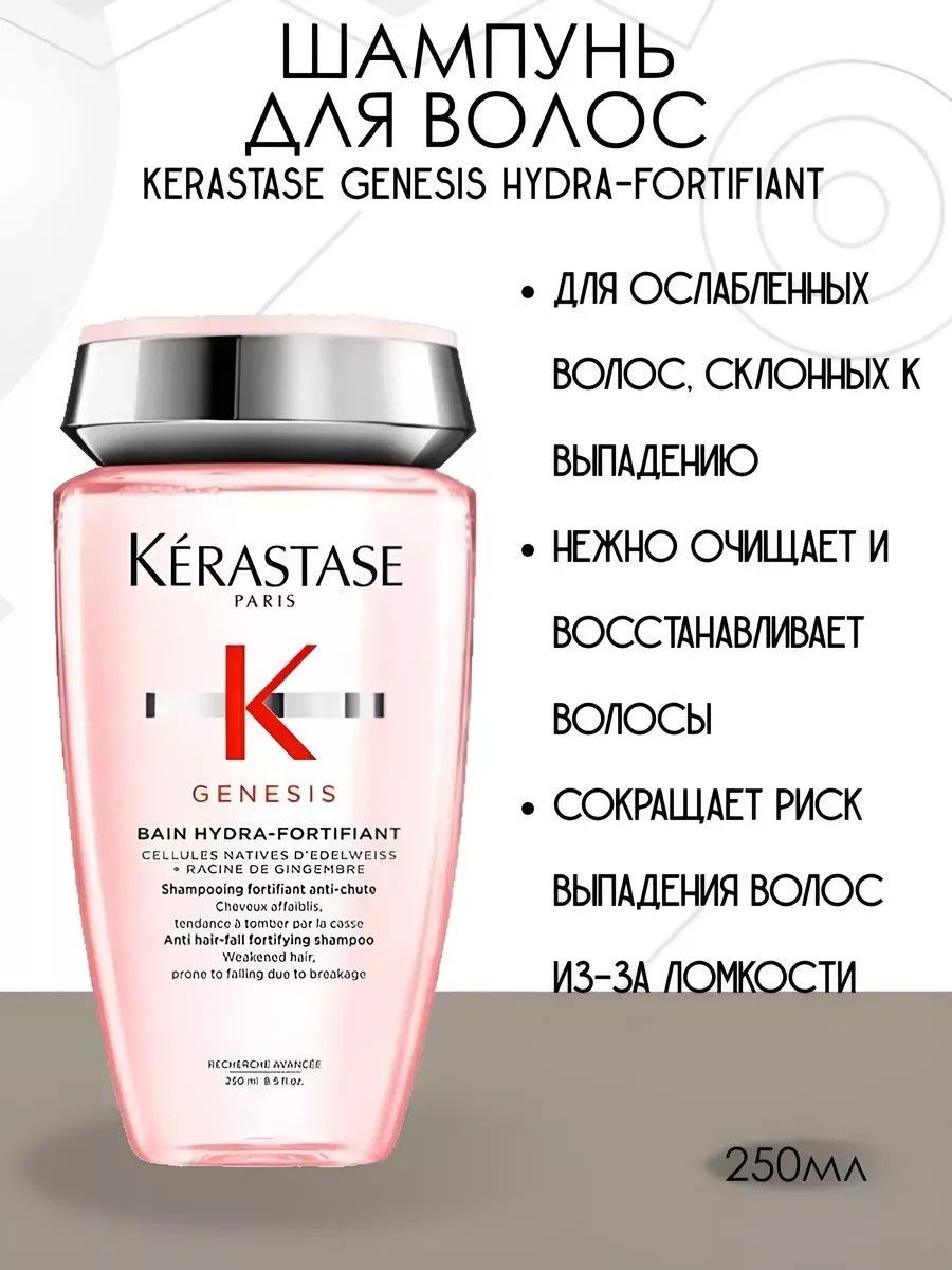 Укрепляющий женский шампунь для ослабленных волос, склонных к выпадению. Нежно очищает и восстанавливает волосы и кожу головы, сокращая риск выпадения волос из-за ломкости. Увлажняет волосы, делая их мягкими и гладкими. Укрепляет корни волос, продлевая жизненный цикл волос. Шампунь для ослабленных волос Kerastase Genesis – профессиональное увлажняющее и очищающее средство для волос. Увлажняющий Genesis для женщин поможет восстановить утраченную влагу. Он идеально подходит для окрашенных или мелированных волос сухих вьющихся пористых и тонких. Бережно очищает и ухаживает придавая здоровый вид и блеск. Помогает восстановить поврежденные участки придавая легкость гладкость и блеск. Способ применения: Намочите волосы, слегка отожмите их и массажными движениями нанесите небольшое количество Шампунь-ванны. Добавьте немного воды и мягко помассируйте волосы. При первом нанесении Шампунь-ванны основное внимание уделите коже головы, массируя ее кончиками пальцев, чтобы удалить загрязнения. Тщательно промойте волосы водой. Массажными движениями повторно нанесите такое же количество, добавляя немного воды. Шампунь-ванна будет лучше пениться — это поможет промыть волосы по всей длине, от корней до кончиков. Тщательно смойте. Используйте этот укрепляющий Шампунь-ванну ежедневно для бережного очищения и снижения риска выпадения волос из-за ломкости. Красота с косметикой дял волос Керастаз Генезис спасет мир! Состав: AQUA / WATER / EAU, SODIUM LAURETH SULFATE, CITRIC ACID, COCAMIDOPROPYL BETAINE, SODIUM HYDROXIDE, PROPYLENE GLYCOL, SODIUM CHLORIDE, SODIUM BENZOATE, HEXYLENE GLYCOL, POLYQUATERNIUM-10, SALICYLIC ACID, LIMONENE, LINALOOL, GLYCERIN, BENZYL SALICYLATE, COUMARIN, ZINGIBER OFFICINALE ROOT EXTRACT / GINGER ROOT EXTRACT, CITRAL, BENZYL ALCOHOL, CITRONELLOL, XYLITYLGLUCOSIDE, ANHYDROXYLITOL, LEONTOPODIUM ALPINUM CALLUS CULTURE EXTRACT, XYLITOL, XANTHAN GUM, DIPEPTIDE DIAMINOBUTYROYL BENZYLAMIDE, DIACETATE, PARFUM / FRAGRANCE.