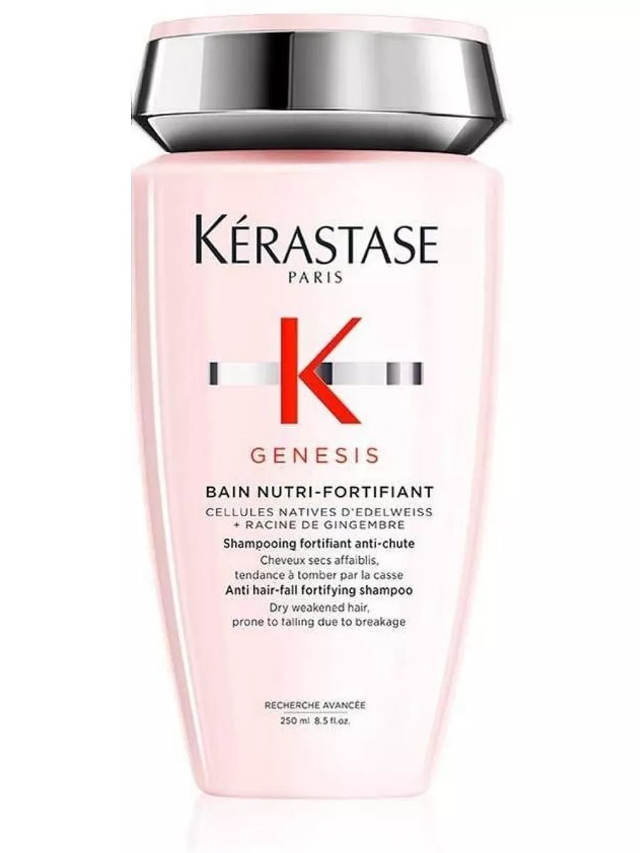 Genesis Nutri-Fortifiant Shampoo for dry, weakened, brittle hair prone to hair loss. Ginger root protects against daily exposure to aggressive external factors. Edelweiss cells are a popular skin care ingredient that helps maintain collagen and has antioxidant properties. The Edelweiss flower can survive the most extreme conditions. Wet hair, gently squeeze it, and massage a small amount of Shampoo-Bath into the scalp. When applying, focus on the scalp, massaging it with your fingertips to remove impurities. Rinse hair thoroughly with water. Massage again, adding a little water. The Shampoo-Bath will lather better, which will help cleanse the entire length of the hair, from roots to ends. Rinse thoroughly. Use daily to gently cleanse and reduce the risk of hair loss due to breakage. Kerastase