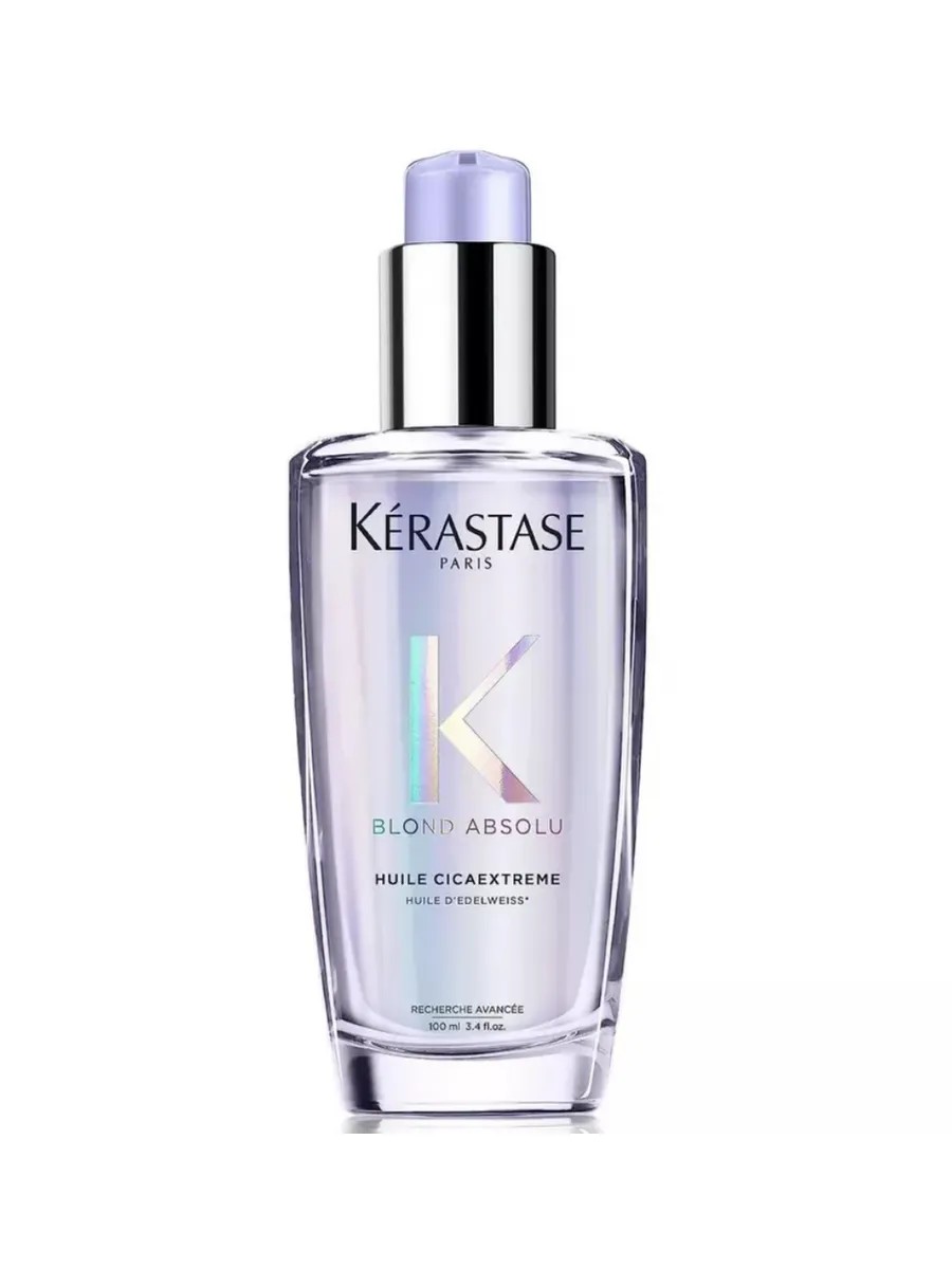 Huile Cicatextreme is a strengthening oil that restores sensitive hair after bleaching. This concentrate for vulnerable hair after bleaching adds shine and strengthens the hair's resistance to external aggressors. Blond Absolu Oil intensely moisturizes and restores volume to bleached hair, making it up to 91% stronger and more resilient, while reducing its porosity after bleaching. It seals open cuticles and split ends, enhancing hair's softness and making it 6 times shinier. It protects hair from high temperatures up to 230°C and prevents frizz for up to 72 hours. Its thick consistency allows for economical use (1-2 drops for long hair). Deeply moisturizes and nourishes damaged blonde hair, adding shine. This lightweight, transparent hair oil combines edelweiss flower and hyaluronic acid to add smoothness.