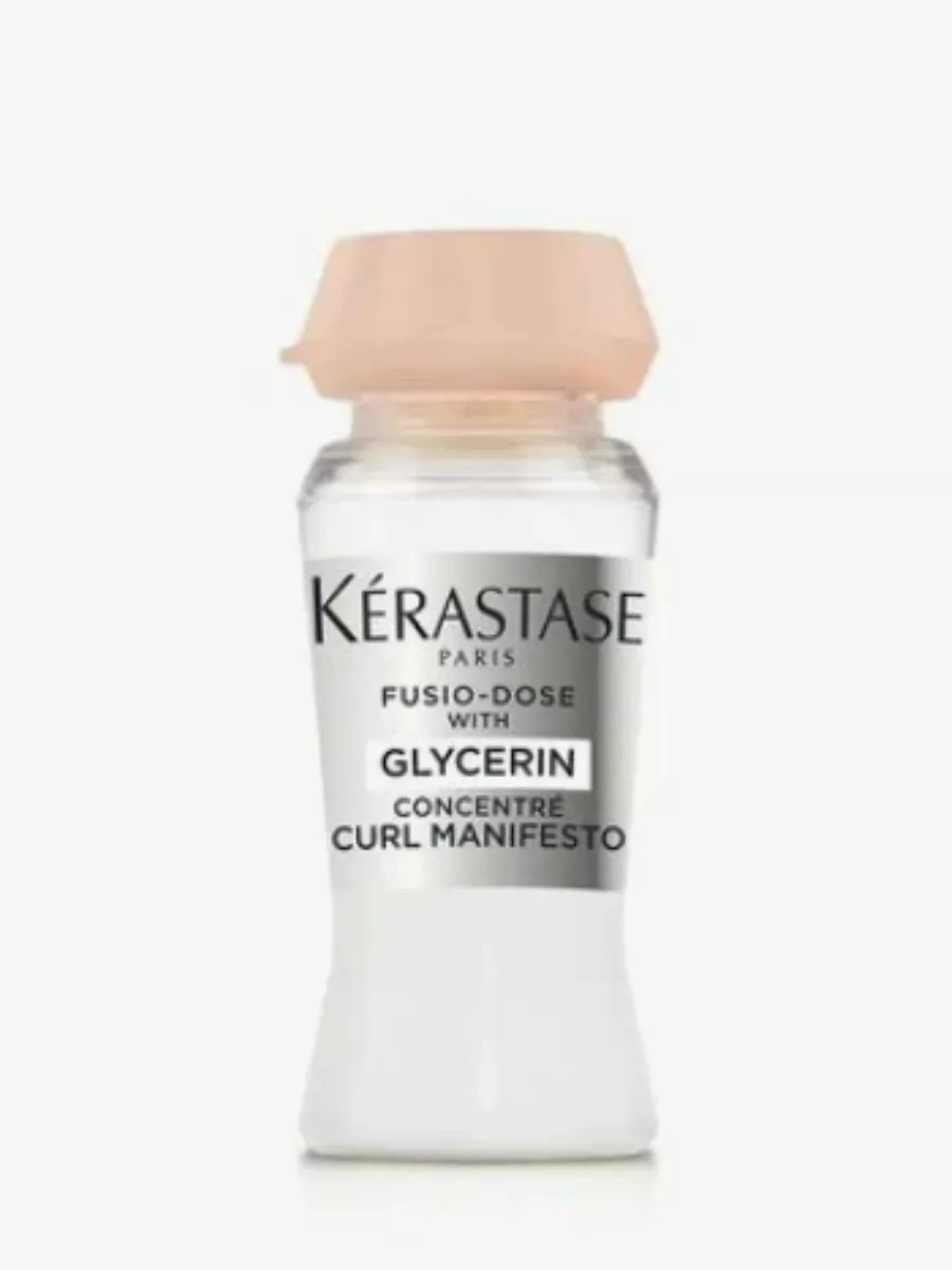 Kerastase Fusio-Dose Concentre Curl Manifesto is part of the Fusio Dose family of professional hair care products designed to address wavy and curly hair. It's enriched with the highly concentrated active ingredient glycerin, which instantly and deeply hydrates hair, infusing it with a strengthening dose of goodness to reduce frizz and provide natural bouncy, defined curls. Kerastase Fusio-Dose Concentre Curl Manifesto is designed to treat frizz as the primary issue and should be combined with a Kerastase Fusio Dose booster of your choice, which activates the treatment while simultaneously addressing the secondary hair issue. The beauty of Fusio-Dose is that you can create a customized solution based on your hair needs and combine various hair treatments into one, mixing the concentrate with various types of boosters to meet your hair needs. A freshly prepared treatment with an initial dose of beneficial properties will completely heal your hair and immediately transform it for lasting results.