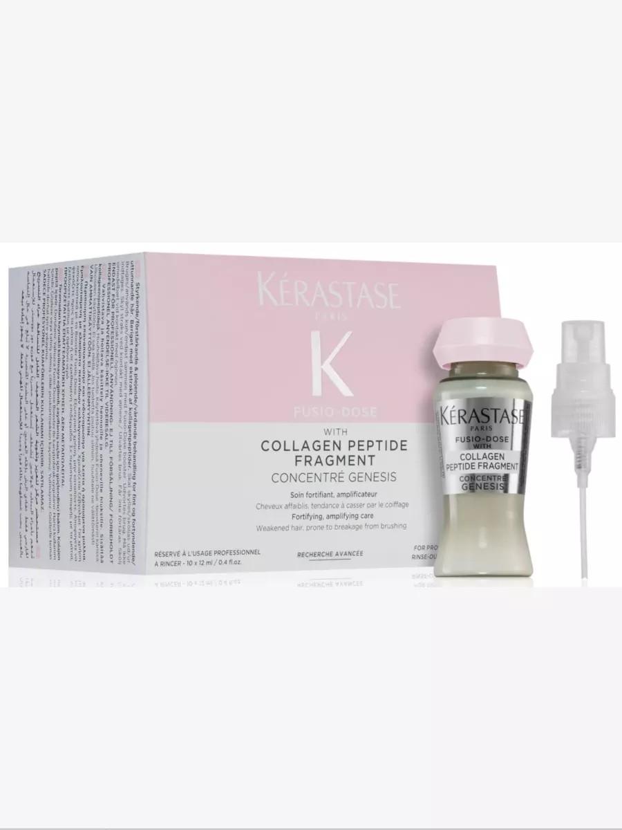 Kérastase Fusio Dose Collagen Peptide Genesis Concentrate is a powerful hair care product designed to strengthen hair fibers and create lightweight volume.