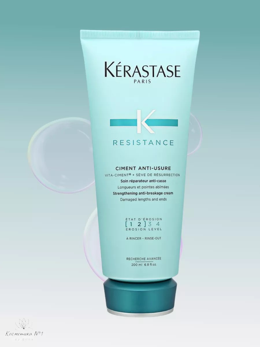 Kerastase Молочко «Уход-цемент» для поврежденных волос, степень повреждения 1-2 Ciment Anti-Usure - профессиональное молочко для ослабленных волос предупреждает ломкость и сечение кончиков. Предназначено для сухих тонких ослабленных поврежденных и окрашенных , в том числе мелированных обесцвеченных и осветленных. В натуральный органический состав входят растительные экстракты, кератин коллаген протеины и керамиды, за счет чего средство восстанавливает поврежденную структуру, сглаживает раскрытые чешуйки, добавляет естественный прикорневой объем , способствует росту крепких и здоровых локонов, против перхоти и выпадения. Отличная термозащита перед укладкой и глубокое питание кожи головы. После применения заметен эффект густоты гладкости блеска и сияния. Бессульфатное молочко действует как восстанавливающий питательный разглаживающий и увлажняющий эликсир концентрат для кудрей и локонов. Женский и мужской несмываемый кондиционер также подойдет для подростка и малышей для легкого расчесывания. Рекомендуется использовать после очистки шампуня Resistance. Мягко помассировать волосы по длине и на секущихся кончиках.