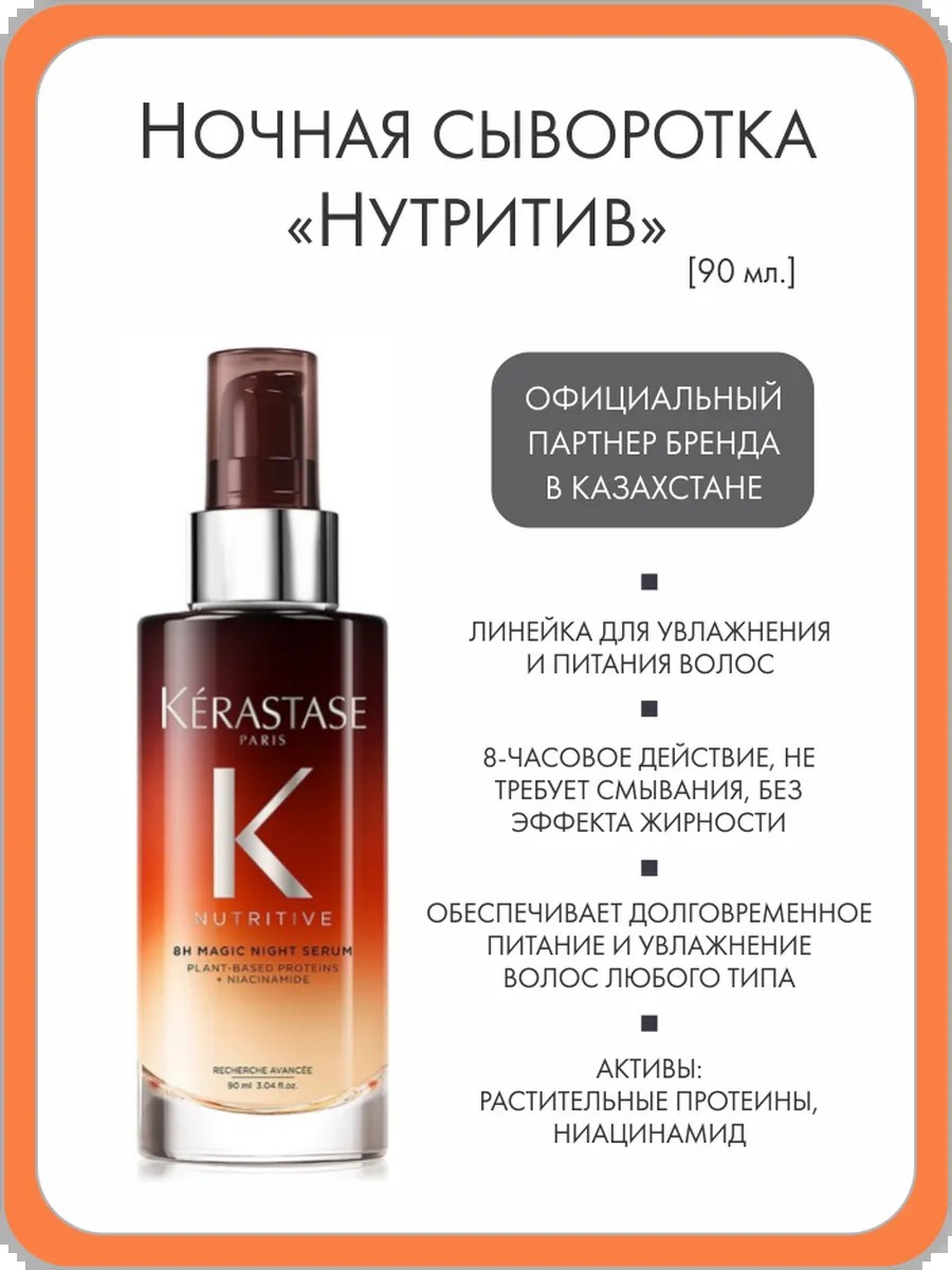 Ночная несмываемая сыворотка для глубокого питания и увлажнения структуры волос со смесью 5 витаминов и растительными протеинами. Сыворотка за 8 часов сна глубоко проникает в структуру волоса, питая его изнутри. Легкая кремовая текстура подходит для волос всех типов волос, облегчает расчесывание тонких волос, а нормальные или толстые волосы делает более послушными, мягкими и гладкими. Корень ирисапостепенно питает волосы на протяжении 8 часов. Восполняет питательные вещества, утраченные в дневное время, и создает защитное покрытие на волосах. Смесь 5 витаминов(витамины E, C, B3, B5, B6) запечатывает кутикулу и придает волосам шелковистость. Обеспечивает постепенное проникновение питательных веществ и удерживает их внутри волоса на протяжении 8 часов. Наутро волосы выглядят ухоженными и здоровыми, легче поддаются укладке и излучают приятный аромат.