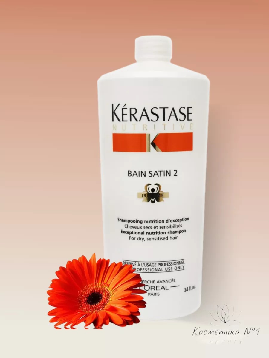 Шампунь-ванна Kerastase Nutritive Bain Satin 2 питательный для сухих волос и ослабленных волос 1000 мл. Мягко промывает и питает волосы. Шампунь-ванна сатин 2 Керастас призван устранить проблему непослушных волос. Шампунь для волос женский профессиональный обеспечивает качественное питание ломких поврежденных волос, а также помогает справиться с сечением кончиков и склонностью волос к выпадению и ломкости. В состав шампуня Satin 2 входит уникальный комплекс Dosage Gluco-Active-2, наполняющий жизненной энергией каждый волосок. Именно этот комплекс дарит волосам силу, здоровье и потрясающий блеск. А комплекс глицерина, протеина и липидов эффективно питает, увлажняет и защищает волосы, дарит им гладкости и делает волосы более послушными. Безжизненные чувствительные волосы становятся ровными, мягкими, блестящими, при регулярном применении существенно улучшается структура волос и устраняется проблема секущихся кончиков. Kerastase Nutritive Сатин №2 профессиональный шампунь-ванна, используемый для ухода за волосами сухого и нормального типа, подходит для ежедневного применения. Это отличный выбор для обладателей тонких прядей, склонных к выпадению и повышенной ломкости. Активные компоненты продукта нормализуют питание волос от корней до кончиков. На этапе очищения шампунь-ванна решает проблему с запутанными прядями. После мытья они становятся мягкими и шелковистыми, приобретают здоровое сияние. Входящая в состав глюкоза дарит волосам заряд энергии. Липиды образуют на поверхности защитную оболочку. Шампунь для укрепления волос без сульфатов и парабенов профессиональный. Подойдет шампунь для тонких волос, для окрашенных волос, для осветленных волос.