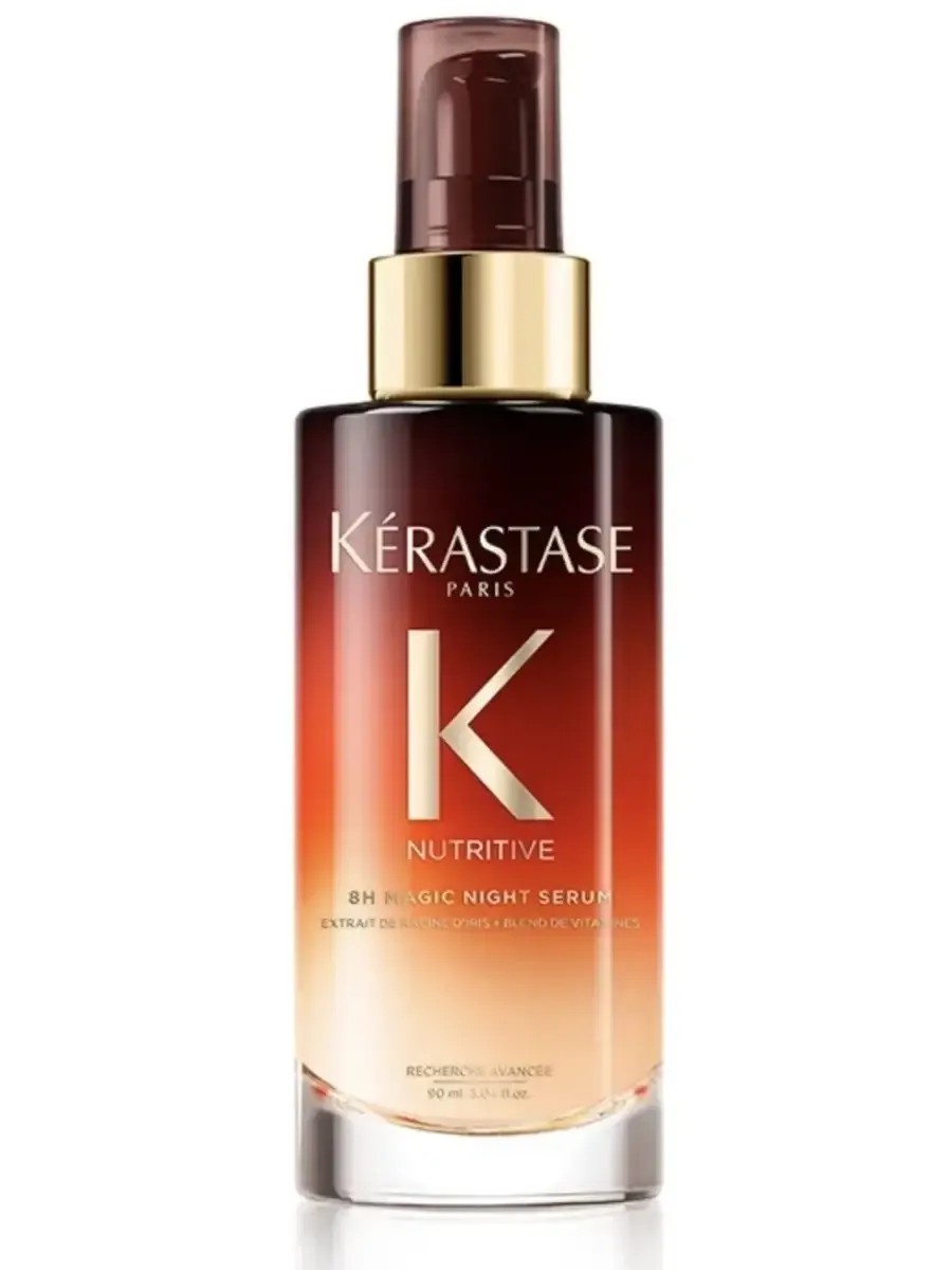 Kerastase Nutritive 8h Magic Night Serum, a leave-in night serum, deeply nourishes hair of any dryness. During your 8 hours of sleep, the serum penetrates deeply into the hair shaft, nourishing it from within. Its light, creamy texture is suitable for all hair types: it detangles fine hair, while normal or thick hair becomes more manageable, soft, and smooth. In the morning, hair looks well-groomed and healthy, easier to style, and emits a pleasant scent. A blend of 5 vitamins (vitamins E, C, B3, B5, B6) seals the cuticle and makes hair silky. It ensures gradual penetration of nutrients and locks them in for 8 hours.