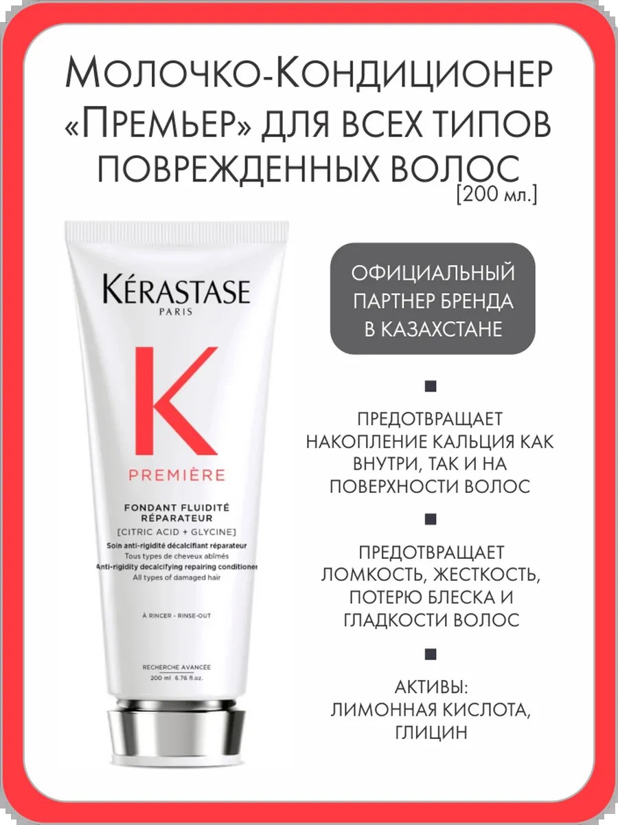 Кондиционер-молочко для декальцинации и восстановления всех типов поврежденных волос. Восстанавливает структуру волос изнутри, уменьшает ломкость и восстанавливает их силу. Обеспечивает эффект более гладких, послушных, блестящих и эластичных волос. При каждом контакте с водой кальций накапливается и проникает между кератиновыми структурами и разрушает их связи, делая волосы более жесткими и ломкими изнутри. Снаружи кальций накапливается на поверхности волос, что приводит к потере блеска и отсутствию гладкости. Кроме того, поврежденные волосы из-за пористости могут поглощать до 3 раз больше кальция из проточной воды (чем неповрежденные волосы), провоцируя перенасыщение кальцием. Для декальцинации лимонная кислота работает на поверхности, а также проникает внутрь волос, способствует ликвидации перенакопления кальция – для противодействия потере блеска и гладкости волос. После устранения перенакопления кальция, глицин проникает в волосы для восстановления разрушенных кератиновых связей и уменьшает ломкость волос. В качестве укрепляющего ингредиента пептиды способствуют заполнению и закрытию кутикулы волос – для укрепления поверхности, увлажнения и блеска.