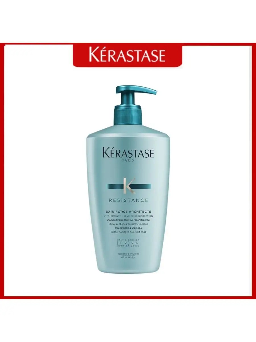 Penetrates hair from the inside and outside, restoring and strengthening it from root to tip. Adds silkiness and shine. Seals brittle hair and split ends, restructuring them. Strengthens weakened hair along the length. Intercellular filling cement Creates, restructures hair They say your hair is your crowning glory. However, if your hair is damaged or prone to breakage, you can try the strengthening shampoo Kérastase Résistance Bain Force Architecte, which restores the natural beauty of your hair. Repairs damaged hair, seals the surface, prevents split ends and fills in damaged areas. Characteristics: makes hair smoother and fills its porous surface gently removes impurities and styling products from the hair strengthens hair and prevents breakage prevents split ends and fills in damaged areas restores damaged hair strands