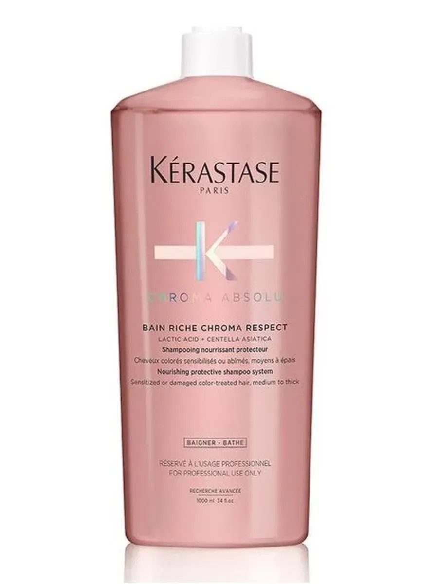 Bain Riche Chroma Respect is a rich, nourishing and protective bath shampoo for all types of color-treated or damaged color-treated hair. Best suited for thick and medium-thick hair. This light pink, translucent gel cleanses and nourishes hair, preventing color fading. Lactic acid and centella asiatica help reduce hair porosity, smooth the surface, maximize color retention, and reduce color-induced frizz.