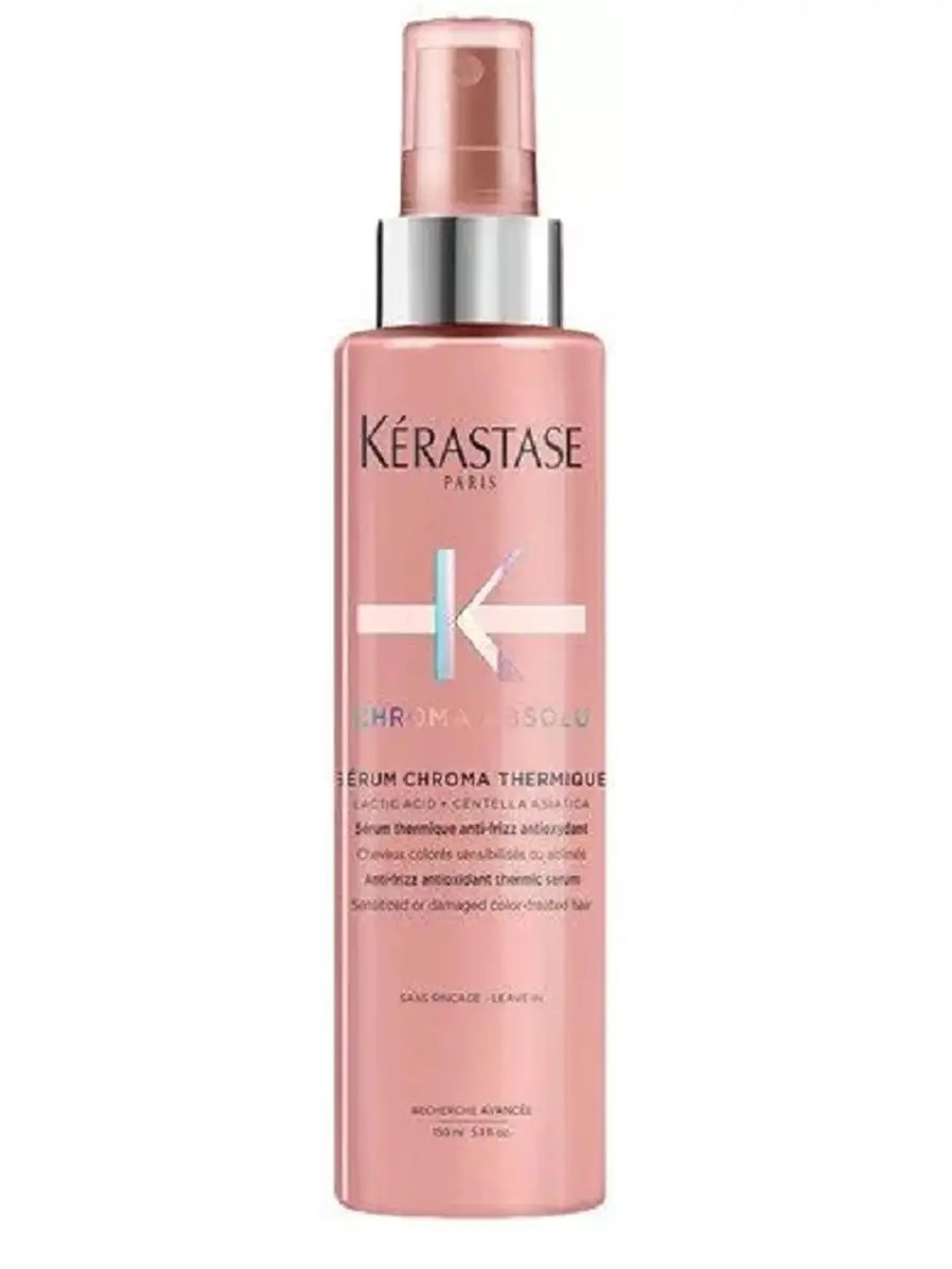 Serum Chroma Thermique - универсальная антиоксидантная термическая сыворотка против пушения для чувствительных или поврежденных окрашенных волос представляет собой белую жидкость. Формула с молочной кислотой и центеллой азиатской помогает сохранить цвет, полностью защищая волосы от всех неблагоприятных внешних факторов: вредного воздействия ультрафиолета, влажности, высоких температур и окислительного стресса. Создает на волосах невидимую легкую микропленку, которая защищает цвет. 150 мл
