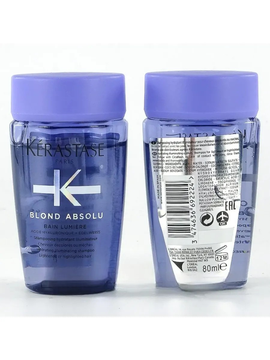 Kerastase Blond Absolu Bain Lumiere Shampoo, 80 ml, is specially formulated to care for color-treated hair, helping to preserve its vibrancy and shine. The shampoo's formula gently cleanses, removing impurities and styling product residue without stripping color. Thanks to its unique formula, the shampoo nourishes and moisturizes hair, leaving it soft, manageable, and shiny. Kerastase Blond Absolu Bain Lumiere will restore your hair's shine and enhance its beauty.