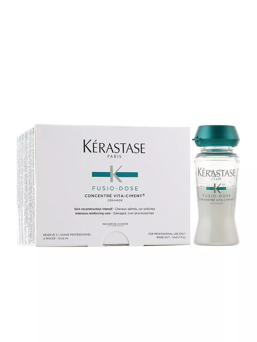 Kerastase Fusio Dose Concentre Vita-Ciment - restores severely damaged hair. Frequent coloring, perming, and other styling procedures can severely damage hair. Some damage to the internal structure results in dull, brittle, and lifeless hair. Kerastase Fusio-Dose Concentre Vita-Ciment (12 ml ampoules) is a cutting-edge product designed to overcome the most challenging restoration challenges for severely damaged hair.