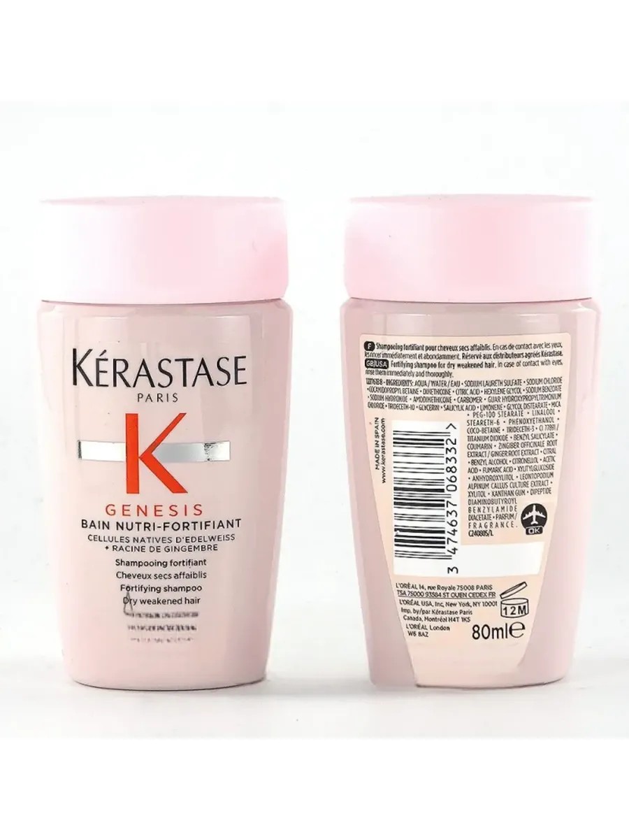 Kerastase Genesis Bain Nutri-Fortifiant Shampoo is a specialized treatment for dry, brittle, and fine hair prone to hair loss. This nourishing formula gently cleanses, strengthens the hair structure, and adds strength and shine. Regular use of Kerastase Genesis Bain Nutri-Fortifiant will help restore damaged hair, prevent breakage, and make it more manageable. 80 ml is the perfect size to try this effective shampoo and experience its benefits.
