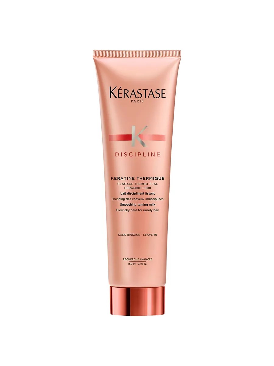 Discipline Keratine Thermique Protective Milk is designed to discipline unruly hair. This product helps maintain your style in all weather conditions. It provides curl control and protection from humidity. Hair is light and smooth to move, flowing freely and tangle-free throughout the day. It has a thermal sealing effect, smoothing the hair fiber, adding incredible shine and smoothness, and making styling easier. Suitable for color-treated hair.